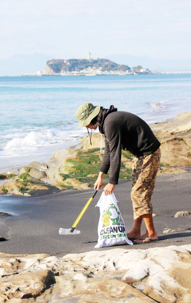 マジップと名付けたこの商品は、従来つかめなかった薄い紙のようなモノから、濡れたり汚れた重量物といった悪条件でも楽に持ち上げる魔法のグリップ力「マジックグリップ」から名付けました。IDSデザインコンペ2011で「IDS賞」受賞。2012グッドデザイン「ものづくりデザイン賞」受賞しています。70cmの長さは腰を屈めることなく楽に掴み、拾い上げられます。280gほどの重さは、手に持った瞬間は重さを感じますが、先端のシリコンの掴みやすさと、シリコングリップは使う際には重さは感じられず、従来より50%の力で拾い上げることができ、ゴミ拾いが楽しく感じます。通常のマジップをより質感を高めた、ステンレス素材にカチオン電着塗装で下地を仕上げ、アクリル塗装で仕上げました。自分の道具としてより愛着の持てる仕様です。ボディーはイエロー。グリップと先端はブラックカラー仕様になっています。マジップトングの用途 ・エコクリーン活動、海岸清掃、空き缶・空き瓶などのごみ拾い。・手の届かないところのモノを取る。