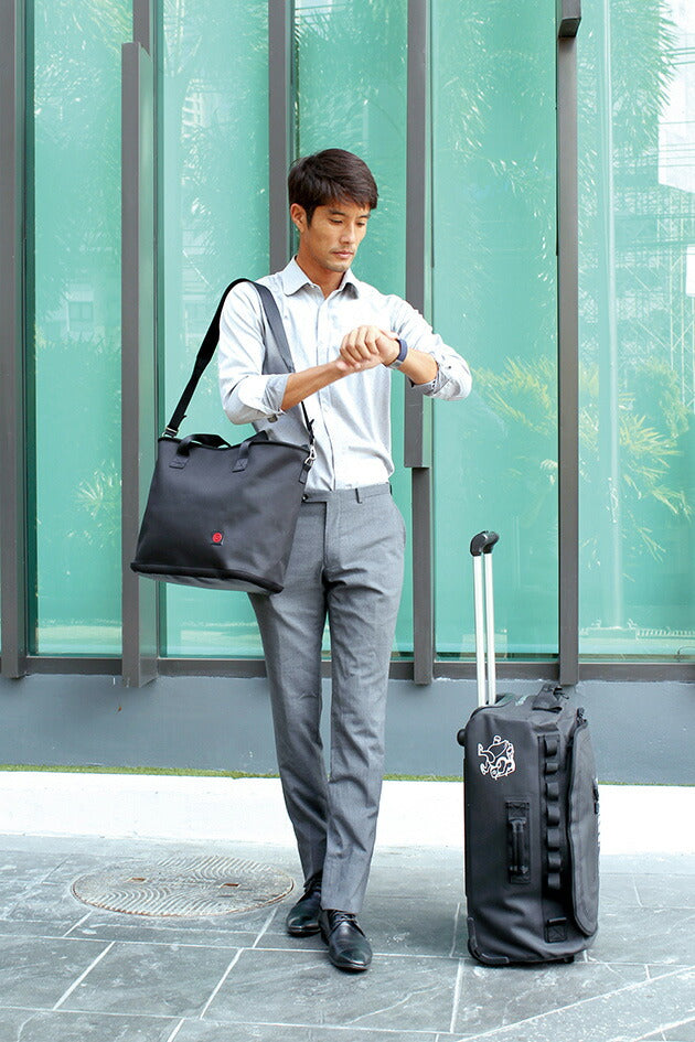 ビジネスシーンにも対応した収納力と耐久性を持ち併せたトート。縫い目には防水シーリング加工を施しています。また、取り外しが可能なショルダーストラップが付属していますので、肩掛けで持ち歩くこともできます。インナーメッシュポケット付き。
