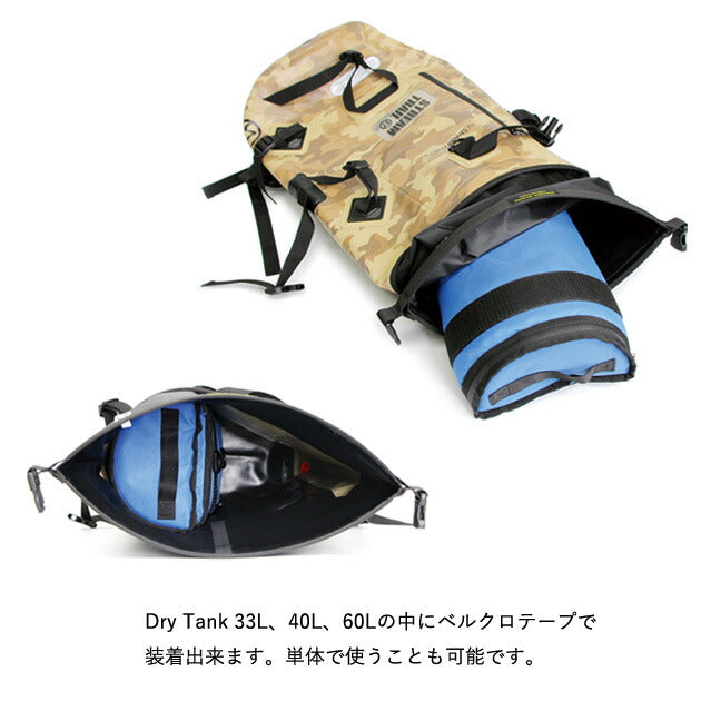 Dry Tank 33L、40L、60Lの中にベルクロテープで装着することができます。約4kgの魚が一匹入るサイズです。(状況によっては尻尾か頭を切り落としてください)もちろんバッグは、インナーバッグとしてだけでなく、単体で使うことも可能です。