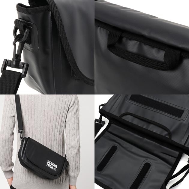 ベルクロで留めるフロントフラップが付き、開口部はファスナーで開閉することができるショルダーバッグです。本体背面にはハンドルが付いてますので、ハンドバッグとしても使用可能です。フロント部にはボディポケット(間口約17cm)が備わっていますので、使用頻度の高いスマートフォンやチケット・定期券などを入れるのに役立ちます。取り外し可能なショルダーストラップは最大125cmまで伸ばすことができますので、斜め掛けも可能。ショルダーストラップにはロゴ付きのパッドが付いていますので、肩への負担を軽減し、滑りを防ぎます。容量約5L。B5サイズが入ります。水筒やハンドタオル、スマートフォン等のお出掛け時の最低必需品を収納することができます。バッグ内部にはメッシュポケット(17×11cm)とDカンが付いていますので、鍵や手帳などの小物の仕分けがしやすくなっています。見た目以上にたくさん入るスマートなバッグ。釣行のお供にも、旅行先に持って行くサブバッグとしても、おすすめです。6色のカラーバリエーションから、気分や使うシーンに合わせてお好きな色をお選びください。