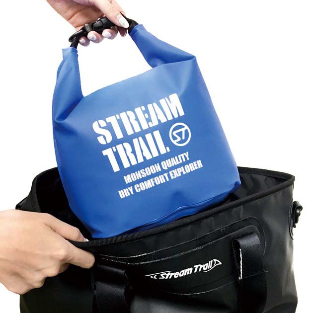 小型防水バッグ。やわらかいPVC素材のため、コンパクトになります。防水機能をいかして濡れたものや濡らしたくないものを、インナーパックとして他のものと分別して収納も可能です。バッグ上部を2~3度折り曲げて閉じる構造により、高い防水性を備えています(ロールダウン式)。その為、ジムでのスポーツバッグ、水辺でのレジャー、防災用のエマージェンシーバッグなど、様々な用途で使用できます。
