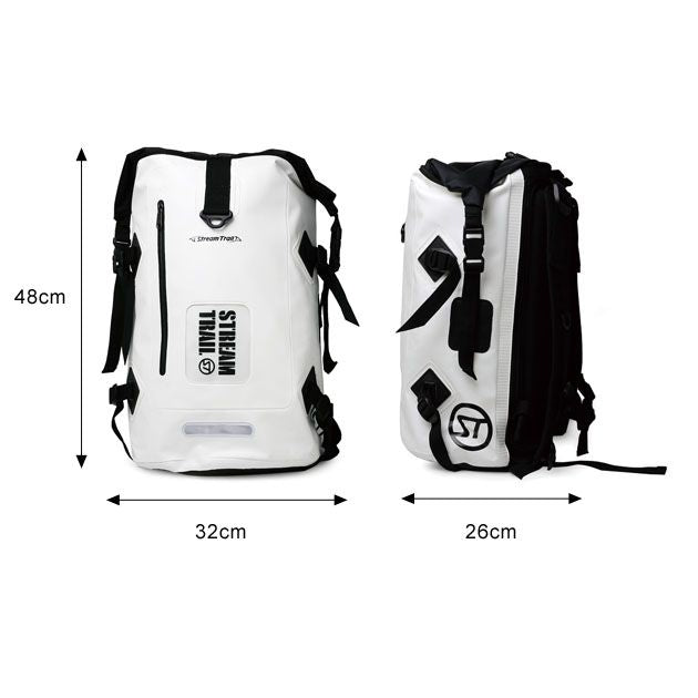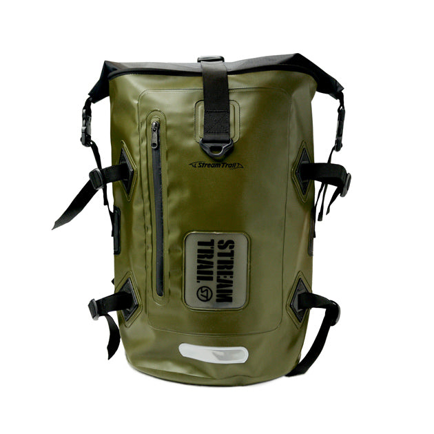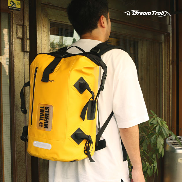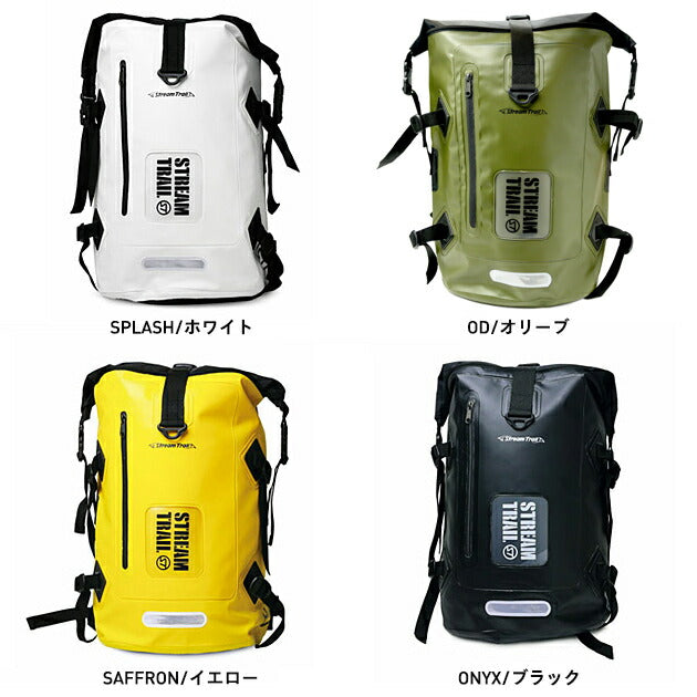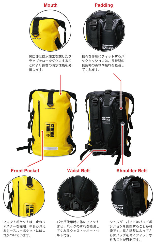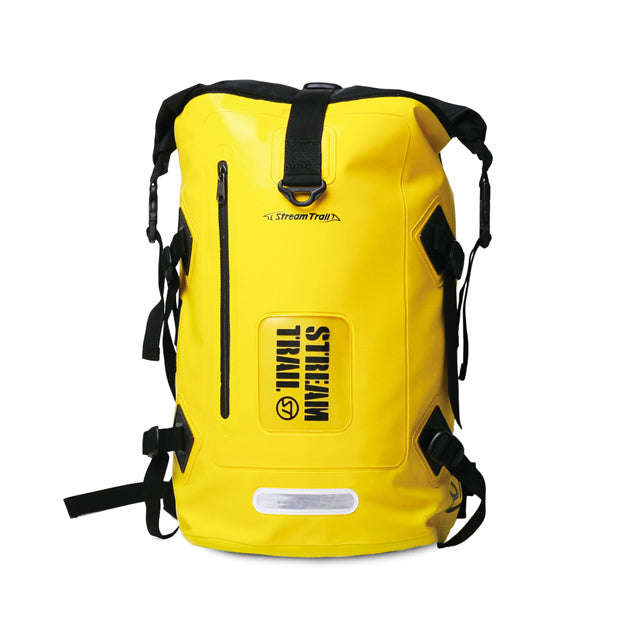 DRY TANK 33L D2は、25Lと40Lの中間の大きさで、もう少し容量が欲しいと言った声にお答えしたミディアムサイズのバックパックです。DRY TANK D2シリーズは抜群の防水性能を誇るストリームトレイルのベーシックなバックパックです。防水バッグに使用されている表面素材の《ターポリン》は、ポリエステル系の繊維を合成樹脂フィルムではさんで溶着したものです。テントやよく街で目にする屋外広告の横断幕、工事現場などでも使われており、水に強く、過酷な状況下でも裂けたりしにくく、摩擦にも強い生地となっています。水の入りやすい開口部は、防水加工を施したフラップをロールダウンすることにより抜群の防水性能を発揮するとともに、ロールしやすい柔らかい生地を採用しています。多少の汚れでも簡単に拭き取ることができるため、手入れもしやすいため、フィールドにもタウンにも使用いただけます。豊富なサイズバリエーションとカラーバリエーションで本格的なアウトドアからデイリーユースまで様々なシーンで活躍します。小物の収納には、ベルクロテープで着脱できる4タイプのインナーポケットを、オプションでご用意しております。また、DRY TANKシリーズ全てのショルダーベルトに装着できる、ドリンクホルダーとモバイルホルダーもご用意しております。※インナー・ホルダーは別売りです。