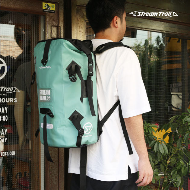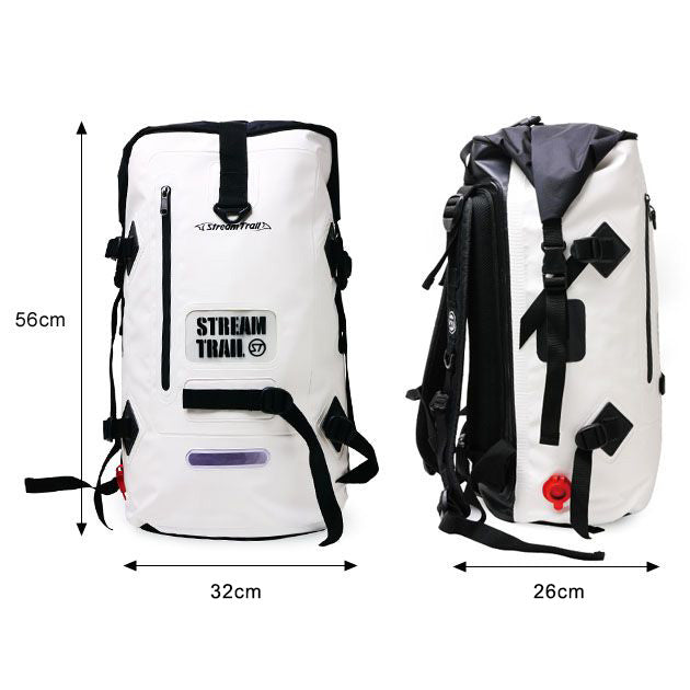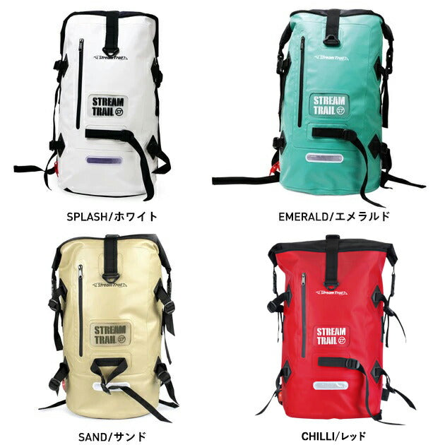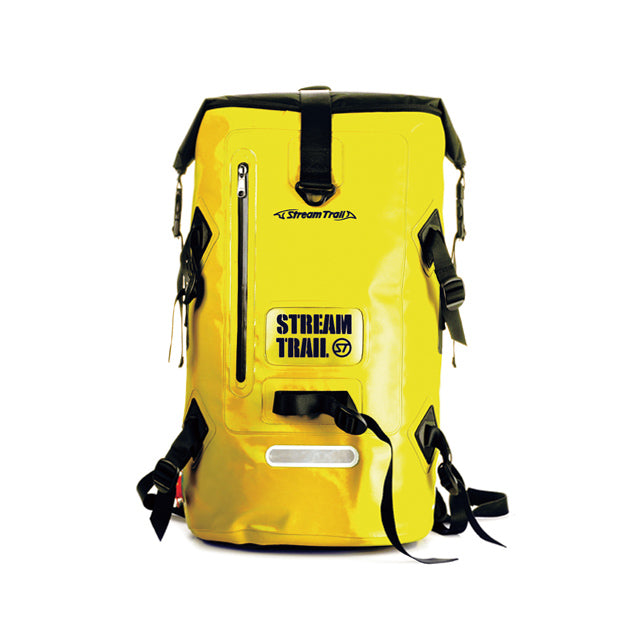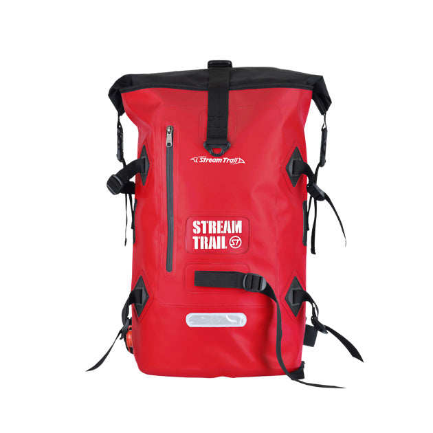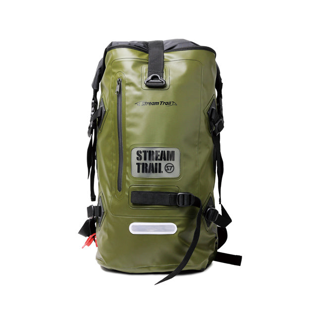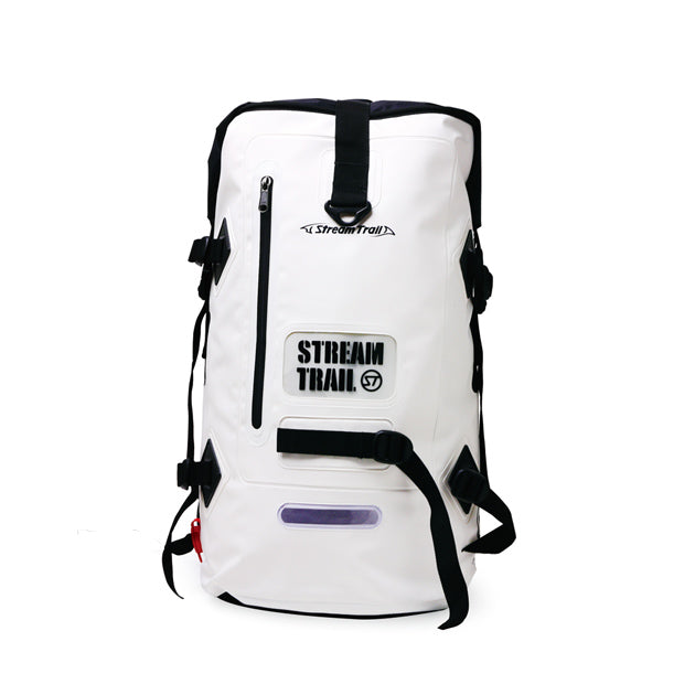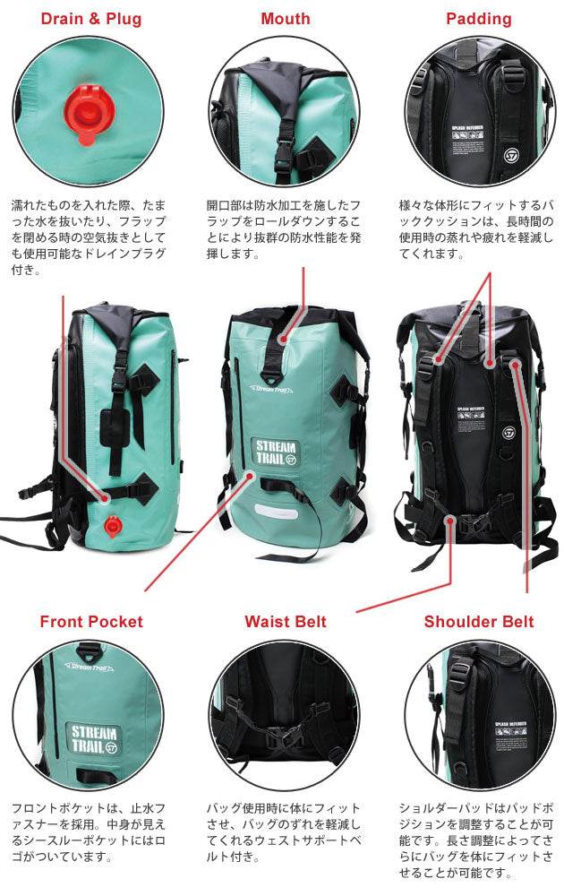 DRY TANK D2 40Lは、2泊~3泊程度の旅行またはツーリングやダイビングの遠征などにお使い頂ける容量のバックパックです。DRY TANK D2シリーズは抜群の防水性能を誇るストリームトレイルのベーシックなバックパックです。防水バッグに使用されている表面素材の《ターポリン》は、ポリエステル系の繊維を合成樹脂フィルムではさんで溶着したものです。テントやよく街で目にする屋外広告の横断幕、工事現場などでも使われており、水に強く、過酷な状況下でも裂けたりしにくく、摩擦にも強い生地となっています。水の入りやすい開口部は、防水加工を施したフラップをロールダウンすることにより抜群の防水性能を発揮するとともに、ロールしやすい柔らかい生地を採用しています。多少の汚れでも簡単に拭き取ることができるため、手入れもしやすいため、フィールドにもタウンにも使用いただけます。濡れたものを収納しても内部にたまった水はドレインプラグから排出可能です。機能だけではなく、キャップの赤がデザイン的にとても印象的!豊富なサイズバリエーションとカラーバリエーションで本格的なアウトドアからデイリーユースまで様々なシーンで活躍します。小物の収納には、ベルクロテープで着脱できる4タイプのインナーポケットを、オプションでご用意しております。また、DRY TANKシリーズ全てのショルダーベルトに装着できる、ドリンクホルダーとモバイルホルダーもご用意しております。※インナー・ホルダーは別売りです。