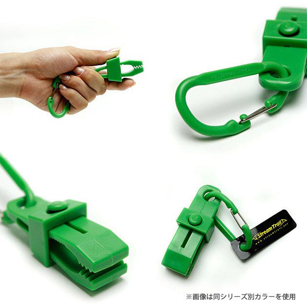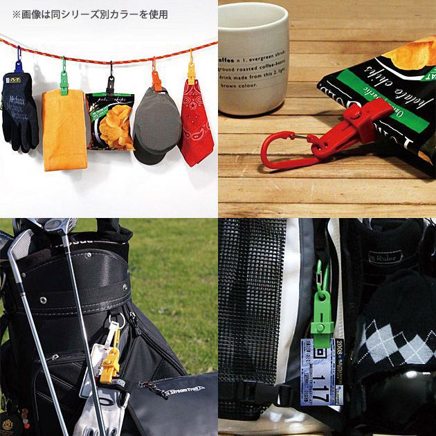 HUNG UP (ハングアップ) の夜光タイプ「GROW」。HUNG UPはクリップにカラビナが付いた便利なアイテム。アリゲータマウスにより、強いグリップでしっかりと掴むので、いったん挟んだものはめったに滑りとれることはありませんが、片手でボタンを押しながらスライドさせると簡単に取り外しできる仕様になっています。グローブやキャップ、ゴミ袋やハンドタオルなどをぶら下げておけば、使いたい時にサッと取り外してすぐに使えます。ファッションアイテムとしてももちろんですが、実用性が高いので、アウトドアやスポーツ、自転車、ガーデニング、DIYなど様々なシーンで活躍します。