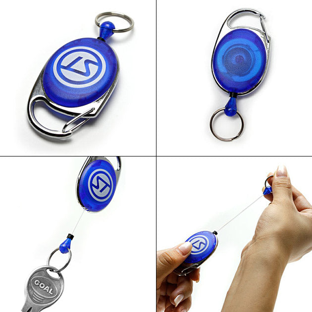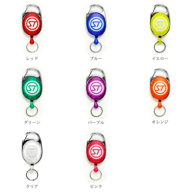 コードリールが内蔵された便利なキーホルダー。本体をベルトループやバッグに装着したまま、取り付けた物を引き伸ばして使用することが出来ます。コードの長さは60cm。手を離せば自動的に巻き取られます。さっと取り出して簡単に収納できるので、鍵やパスケース等を取りつけておくのに最適。ファッションに合わせて選ぶことができる豊富なカラーバリエーションも魅力です。