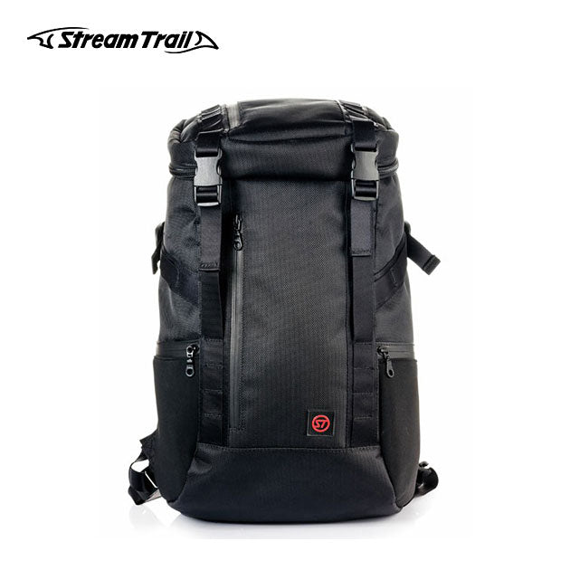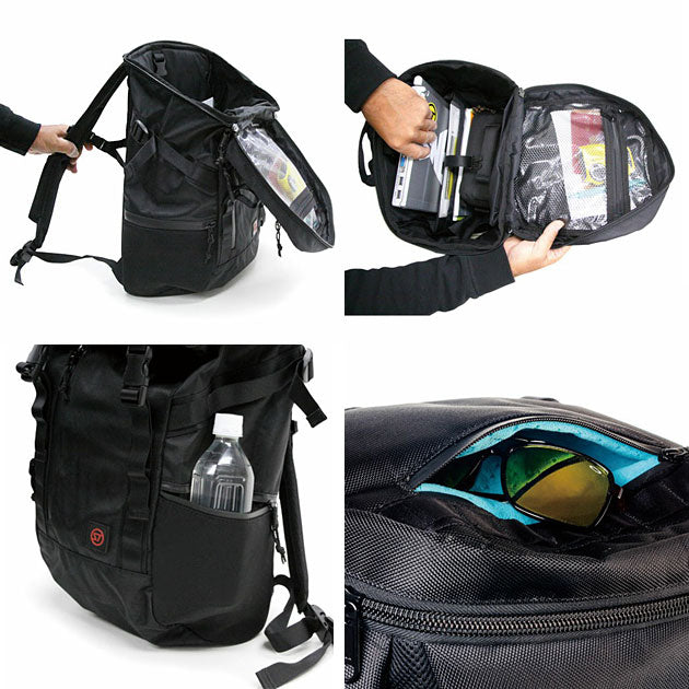 ファストバッグとは、車のルーフからテールにかけての流線形をしたスタイルです。このバッグは、中身を満載したときにテールを絞った形のため、重心を高くすることで背負いやすくしています。1~2泊の旅でも十分に対応できる容量があり、ON/OFFどちらも対応可能なマルチユーズなバックパックです。最大の特徴はメインコンパ―トメントへのエントリーとなるトップフラップの十把が通常のバッグと違い背中側から開くところです。背負いやすさを考慮してノートPCポケットは背中側にあるので、トップトップフラップを全開させる必要なく、スムーズにノートPCを取りだすことができます。またジッパータブを背中側に配置することで、込み入った電車やバスなどで後ろからのスリに襲われにくいというメリットもあります。フラップには、サングラスなどレンズがむき出しでも傷がつきにくいライナーを施したアウトポケット・内側にはパスポートやチケット、財布など目で確認しておきたいものを入れておくクリアメッシュポケットが施されています。また、外側の両サイドのポケットは伸縮性のあるネオプレーンを使用し、ペットボトルのみならず、カメラの三脚など長い物でも収納固定できるように工夫されいます。
