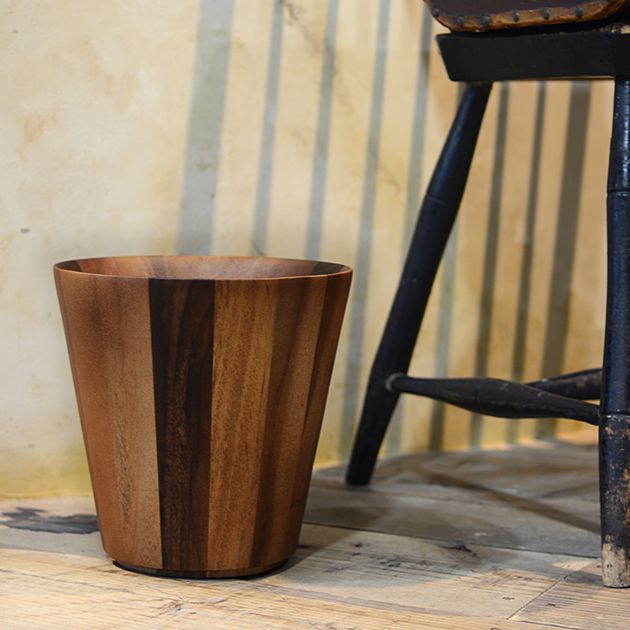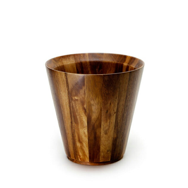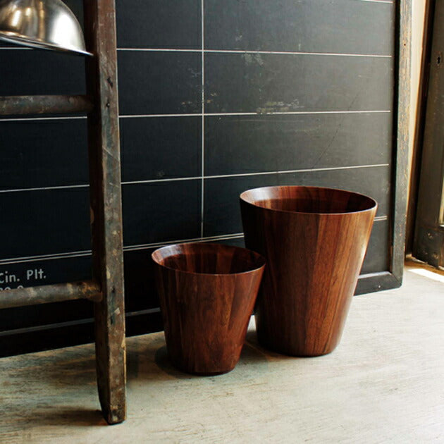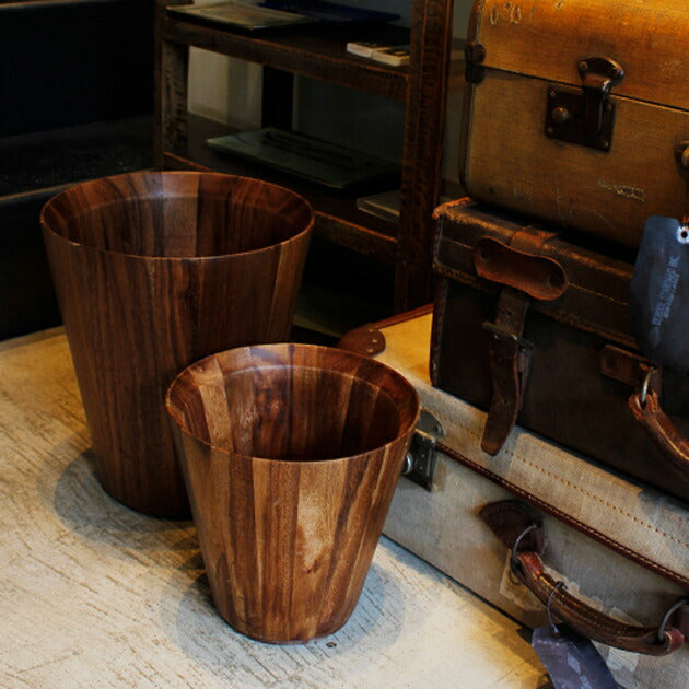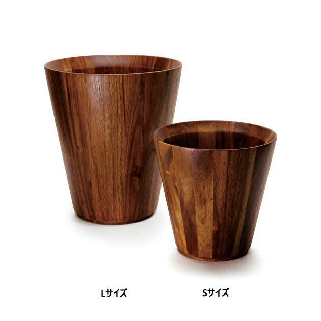 アカシアを使用したダストボックス。濃淡のある木目が特徴のアカシアは、重厚感と高級感のある見た目に加え、船や家具にも使われる耐久性を持っています。しっかりとした厚みの木材をつなぎ合わせて作られており、それぞれ異なる美しい木目が魅力的です。インテリアの中でも比較的大きく、目につきやすいゴミ箱は部屋の雰囲気を左右するので、少し値段は高いですがありがちなプラスチックよりも上質な木製を選んでみてはいかがでしょうか。サイズはSとLの2種類。コンパクトなSサイズはデスクや玄関に、たっぷり入るLサイズはリビングにおすすめです。雑誌や新聞を入れたり、観葉植物の鉢カバーとして使用したりとゴミ箱以外の用途にもお使いいただけます。