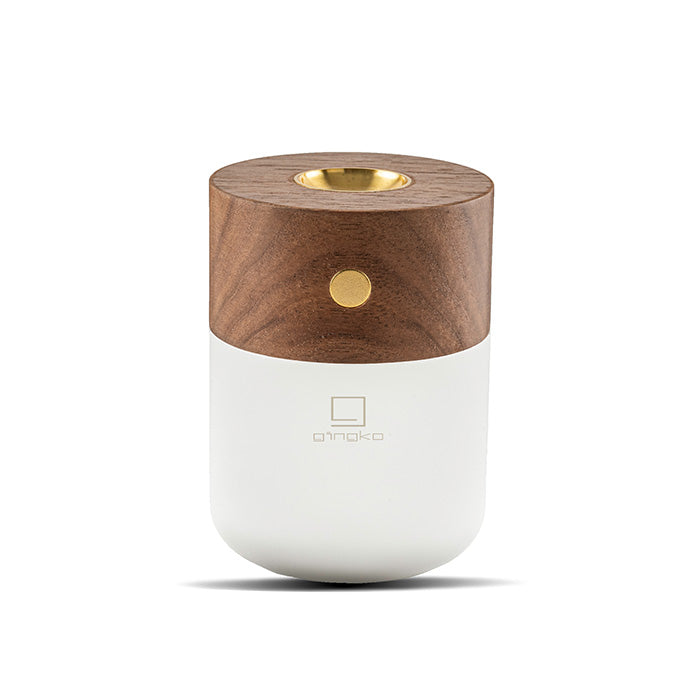 ランプはベッドルームにぴったりの暖色で、3段階の調光が可能です。また上面には銅板のお皿が埋め込まれており、電気の力で銅板を温める機能を持っています。お好みの精油を銅板に垂らすことで部屋に香りを広げることができ、使後はお皿を拭くだけなのでお入れも簡単です。手で包み込めるくらいの小ぶりなサイズ感で、小さなスペースにも設置することができます。