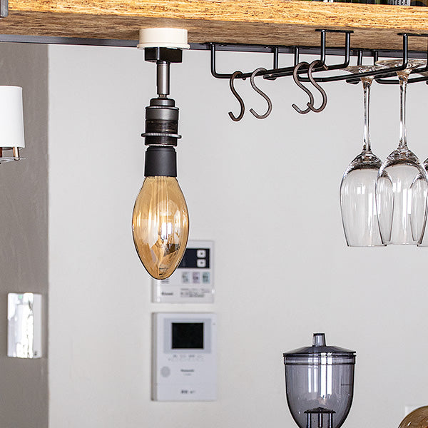 電球をディスプレイするためのシンプルソケットです。ソケットを覆うカバーは真鍮製。エジソン電球のレトロな雰囲気と相性抜群。天井に取り付けてしまえば、あまりわからないところですが細部にこだわりました。取り付ける電球によって見た目の印象が変わります。玄関、廊下、トイレなどのスペースにぴったり。裸電球がレトロな雰囲気を醸し出します。※電球は別売りです。