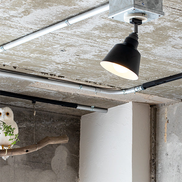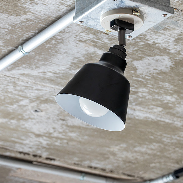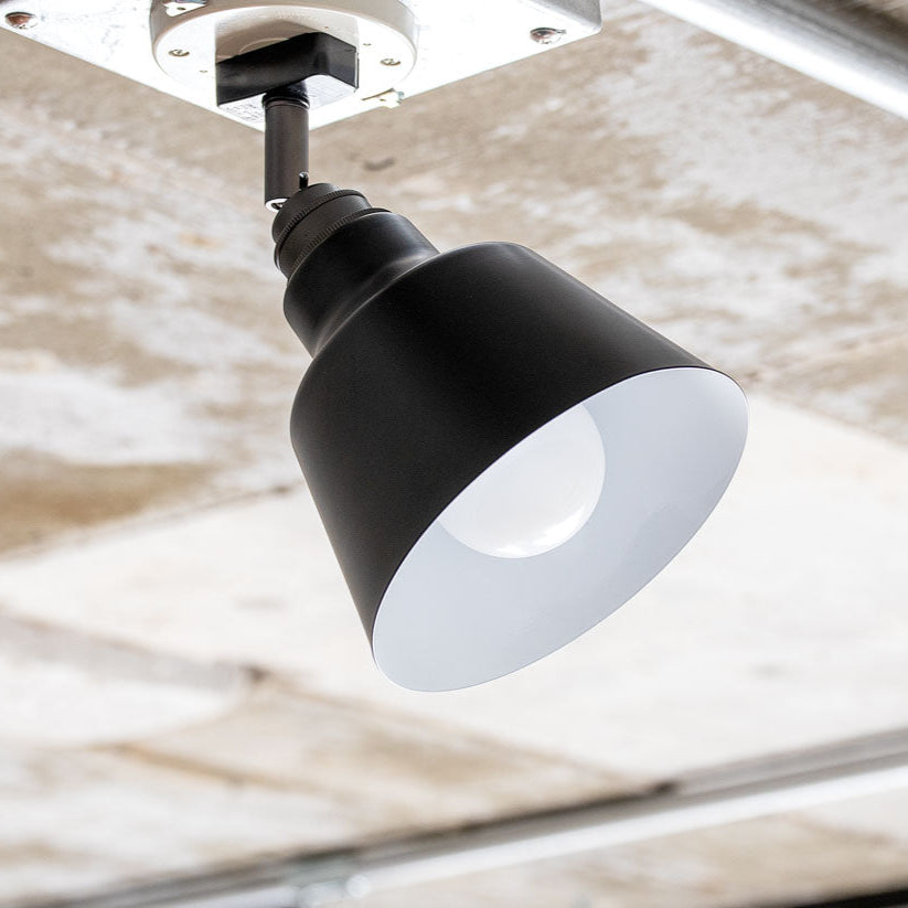 スポットライトタイプのシーリングライトです。角度調節ができて、存在感のある照明。取り付けるだけで空間の雰囲気が変わります。真鍮製のソケットカバーにマットなスチールシェードの組み合わせ。バランスの取れたシンプルなデザイン。シェードの内側はホワイト塗装なので、光を効率よく反射させ明るさを補います。カラーはブラック・ブラック、ブラック・ホワイト、ブラス・ブラック、ブラス・ホワイトの4色展開。インテリアのテイストに合わせて選んでください。