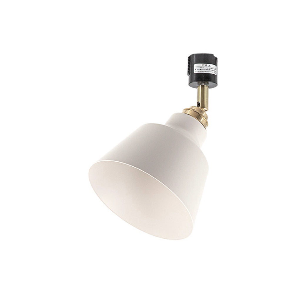 ダクトレール用の照明としてはやや大振りなシェードのスポットライトです。電球を覆うカタチで光は一方向に集中しますが、シェードが大きい分、光も大きく広がります。内側はホワイト塗装で、光を効率よく反射させ明るさを補います。真鍮製のソケットカバーにマットなスチールシェードの組み合わせ。バランスの取れたシンプルなデザイン。シェードの内側はホワイト塗装なので、光を効率よく反射させ明るさを補います。カラーはブラック・ブラック、ブラック・ホワイト、ブラス・ブラック、ブラス・ホワイトの4色展開。インテリアのテイストに合わせて選んでください。