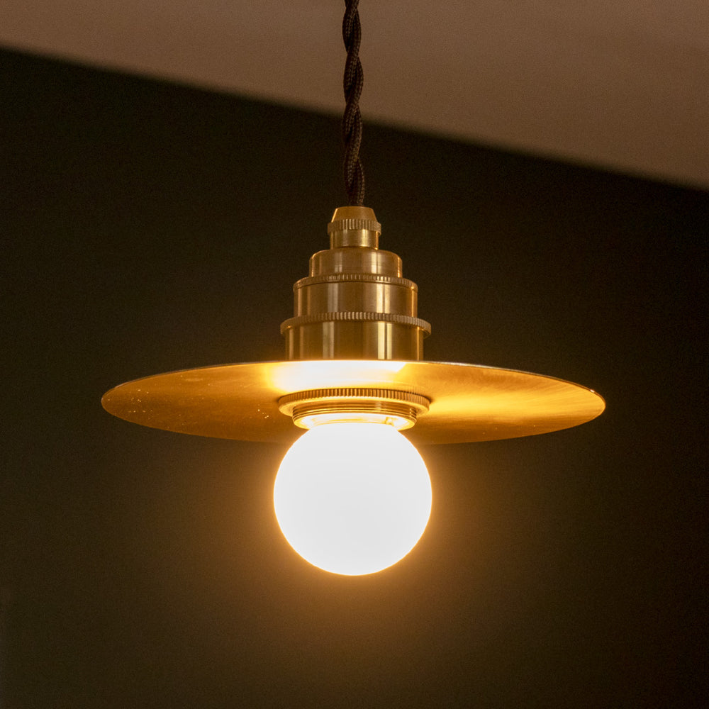 シンプルなソケットに円盤型の真鍮シェードの組み合わせ
