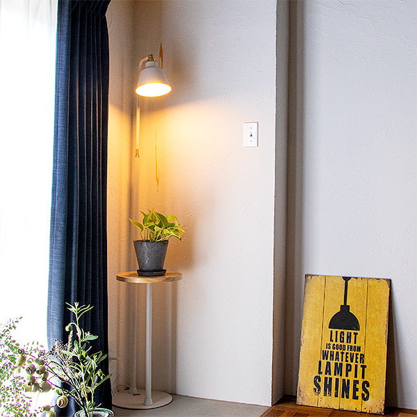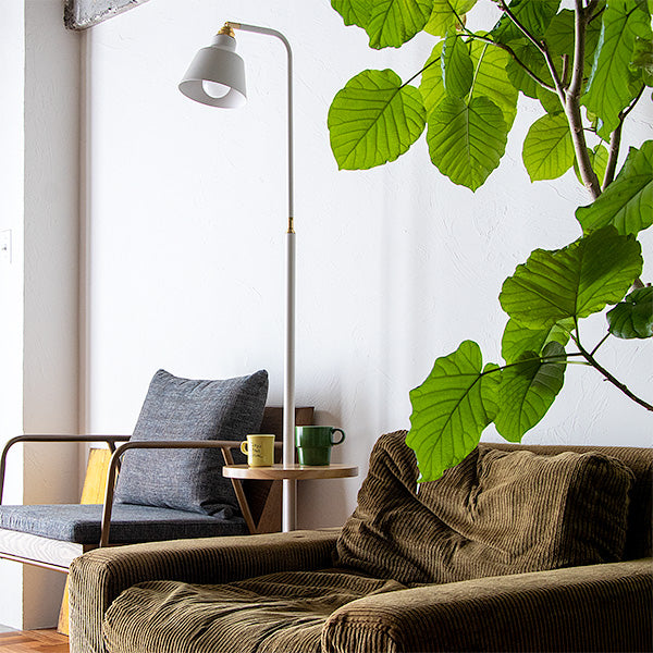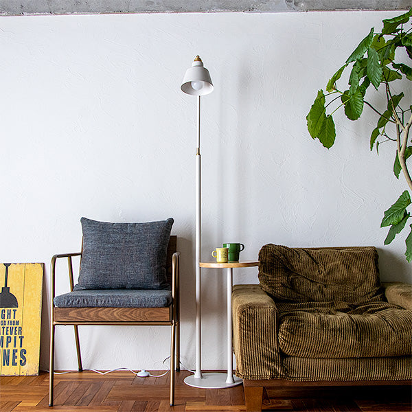 サイドテーブルとフロアライトが一つになった新しいタイプのスタンドライトです。ゴールドの金属部分は贅沢に真鍮を採用しています。可愛らしいスポットライトが手元をしっかりと照らしてくれます。ソファサイドにひとつあれば便利なフロアライトです。※電球は別売りです。