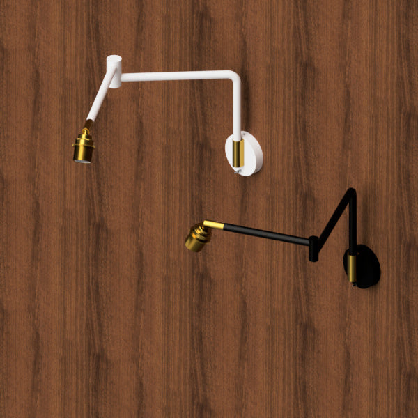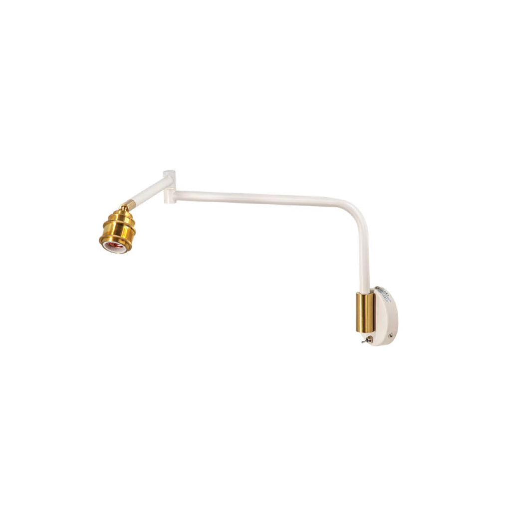 真鍮製のソケットカバーがおしゃれなウォールライトです。アーム部分は可動するので、明かりが欲しい場所をしっかりと照らしてくれます。電源はコンセントまたは壁から直接取ることができます。※電球は別売りです。