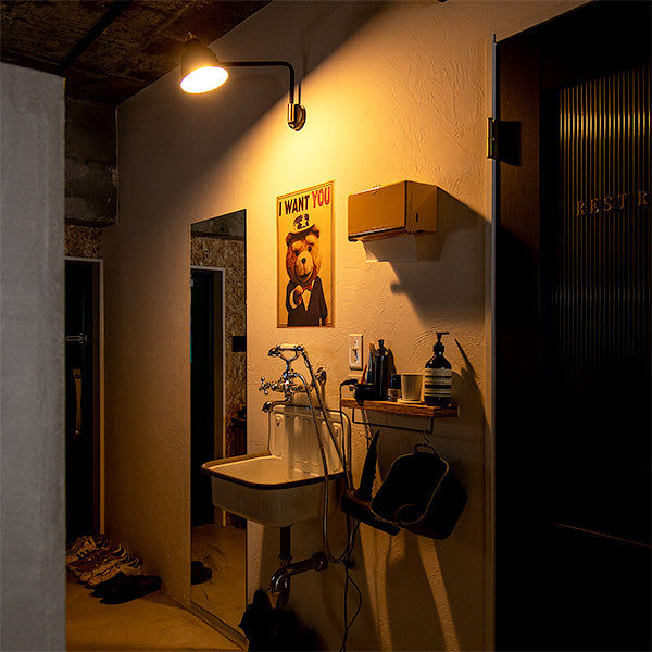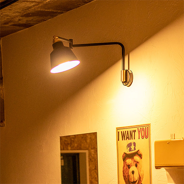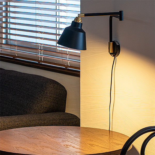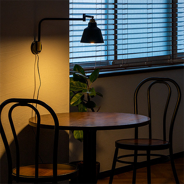 アームが左右に回転することで、スポットライトが前後に伸縮するような仕組みのブラケットライトです。例えばソファー裏の壁に取り付けて読書灯に。またダイニングテーブルの上にペンダントライトを持ってきたいけど、天井電源がない。壁にウォールライトを取り付ければペンダントライトの代わりに、卓上を明るく照らしてくれます。電源のとり方はコンセントと壁から直接とる直付けと両方に対応しています。コンセントだと場所を気にせず気軽に取り付けできます。壁直付けだとコードが見ないのでスッキリした印象。コンセントタイプでしたらプラスドライバーがあれば簡単に取り付けできます。
