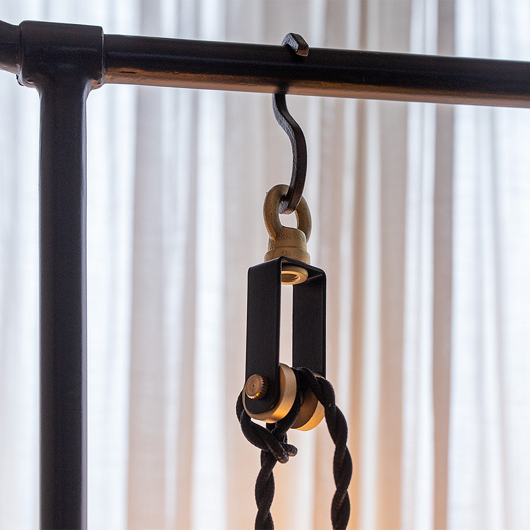 コンセントタイプのペンダントライトを吊り下げるコードハンガー。ペンダントランプ用 吊り下げハンガー カーテンレールやハンガーラックなどにフックを使って吊り下げてください。S字フックは別売です。