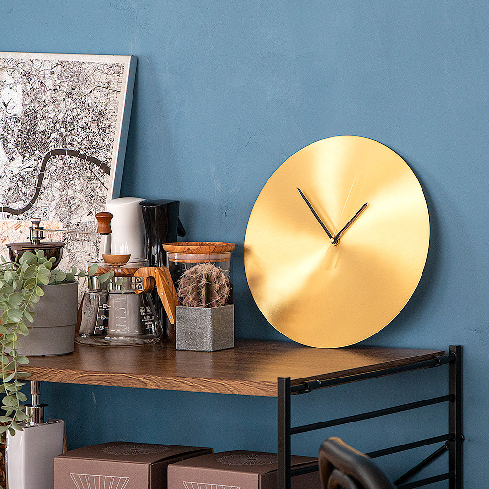 文字盤の装飾を省いた、ありそうでなかったシンプルな掛け時計。真鍮の美しさが際立ったデザインで取り付けるだけで壁面をゴージャスに彩ります。表面はクリアラッカー塗装をしているので経年変化が少なく、きれいな状態を保てます。