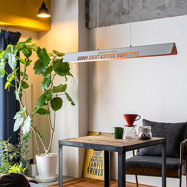 gram eightの代表作となった「LEDバーライト ネオマンクス」をデザインのベースに、丁寧に曲げたアルミ板をシェードにしました。内側はメッキ処理を施し高級感のある仕上げ。バイカラーがおしゃれなペンダントライトです。 シェードのサイズは幅105センチ、奥行き9センチ、高さ8センチの横長タイプなので設置場所は限られてきます。 おすすめの設置場所はダイニングテーブル、カウンターテーブル、キッチンカウンターの上。取り付けるだけでカフェっぽくなるのが容易にイメージできます。 リモコンで点灯・消灯はもちろんのこと、明るさ調節や色味調節といった全機種から受け継いだ機能に加え、4つだったチャンネルが6つに増え、よりお好みに合ったグループ分けに対応でき、更にリラックス、リード、ナイト、エコといったモードボタン、お客様がお好みに合わせて明るさや色味を設定できるメモリーボタン、また、ON/OFFタイマーなどを搭載しました。 スマホアプリ「スマートライフ」に対応。スマホアプリを使うメリットは主に次の3つ ●スケジュール設定で照明器具の点灯、消灯を自動化 ●外出先から照明器具をコントロール ●照明器具をスマートスピーカーでコントロール スマートスピーカーで「間接照明つけて」はありですし、設定によっては、家に近づくとON、家から離れるとOFF、タイマー設定で就寝中にOFFみたい な使いかたができます。