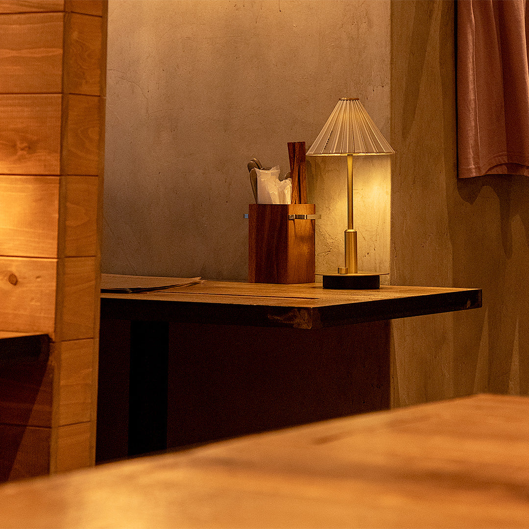 コーヒードリッパーをランプシェードにしただけ。ただそれだけなんですが、サイズや透け感など、このために作られたと思う ほどに、完成度の高いライトに仕上がっています。デザイン性が高く、テーブルの上やキャビネットに一つ置くだけでインテリ アのアクセントになります。 シェードのカラーはマットピンク、マットグリーン、マットブルー、マットベージュ、マットグレー、パープル、ピンク、レッ ド、オレンジ、イエロー、ホワイト、グリーン、ターコイズの13色。本体カラーは高級感のあるブラスと洗練された印象のコッ パーの2色展開です。インテリアに合わせやすいカラーを選ぶか、空間のアクセントになるカラーを選ぶか存分に悩んでくださ い。シェードは取り外しできます。オリガミドリッパーMサイズを用意すれば着せ替えできます。 点灯すると光が薄っすらと透過。透過した灯りがリブ(溝)の輪郭をより強調し、グラデーションのかかった柔らかで温かな灯 りを演出してくれます。 シェードカラーによって点灯イメージは異なります。濃い色のものはその色の影響が大きく透け感も弱いです。周囲が明るいと 透け感はわかりにくいです。