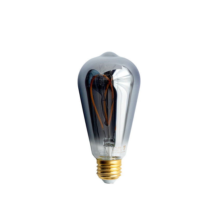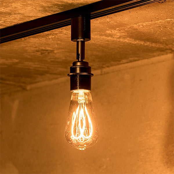 直視しても眩しくない明るさを 明るくないのでご注意ください。 フィラメント電球、エジソン電球、ビンテージ電球、カーボン電球。いろんな呼び方がされている、独特なフィラメントのおしゃれ電球。クリアガラスの電球は雰囲気があってかっこいいですが、点灯した電球を見ると、攻撃的な光に一瞬で目がやられます。眩しいです。 このLED電球は少し変わり者。空間を照らすという電球最大の目的を放棄したLED電球。部屋の明るさを取るのは他の電球任せ。 一般的なLED電球の明るさが810ルーメン。エジソン電球系が400~500ルーメン前後(もっと明るいものもあります)。こちらのLED電球は100ルーメン。圧倒的に低いスペックですが、その代償として他にはない「個性」を手に入れました。この個性がたまらなく愛おしいです。 特徴的なのはガラスの色。一般的な電球のガラスはクリア(透明)かアンバー(琥珀)ガラスのものがほとんどですが、こちらの電球はガラスにブラックメッキを施しました。 鏡面のようなブラックメッキ。点灯していない時でもかっこいいです。電球にインテリアが映り込みます。不点灯時は周りの風景がガラスに映り込みますが、点灯すると映り込みはわかりにくくなります。 ガラスの形状はEDISON(エジソン)| BALL(ボール)| TUBE(チューブ)の3タイプを用意しました。インテリアの雰囲気に合わせて選んでください。 EDISON(エジソン)| BALL(ボール)はハート型のフィラメント。TUBE(チューブ)は螺旋状のフィラメントになります。 多灯吊りがおすすめ。カフェやレストランにもおすすめ。直視しても眩しくない程度に明るさを抑えています。
