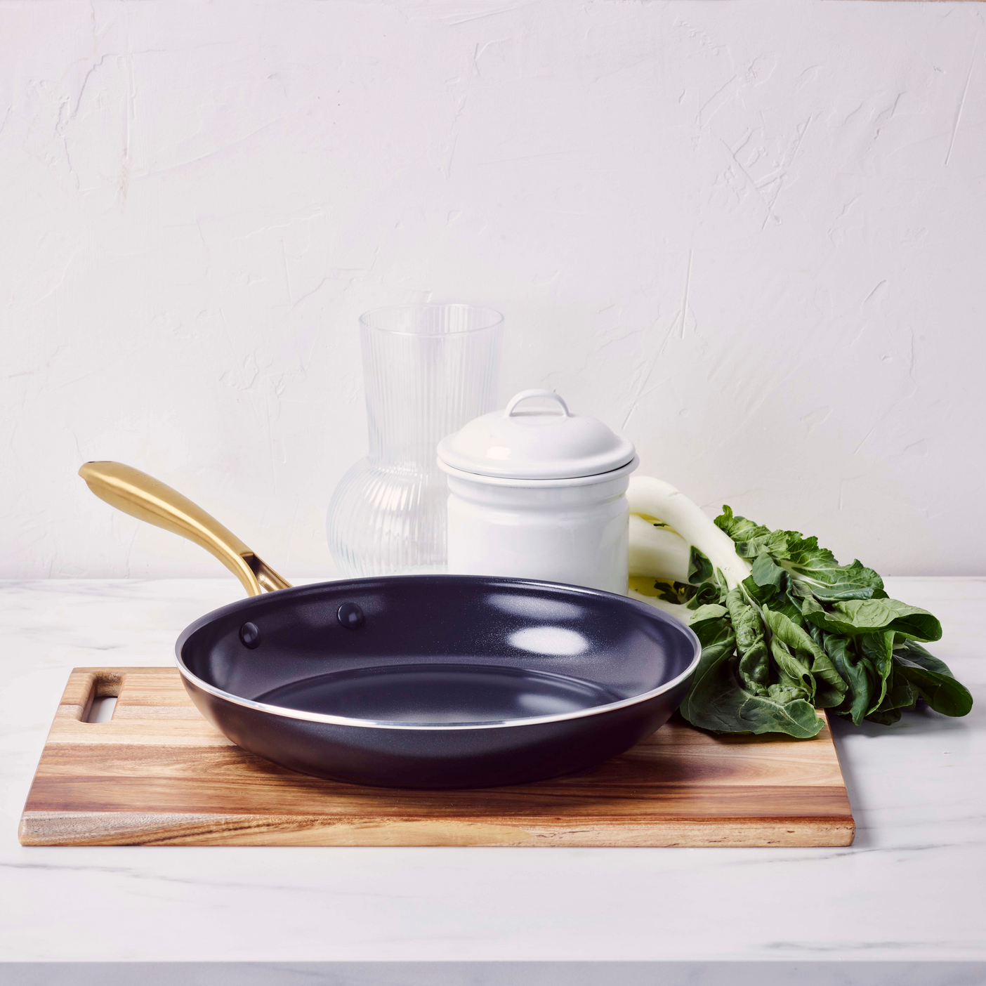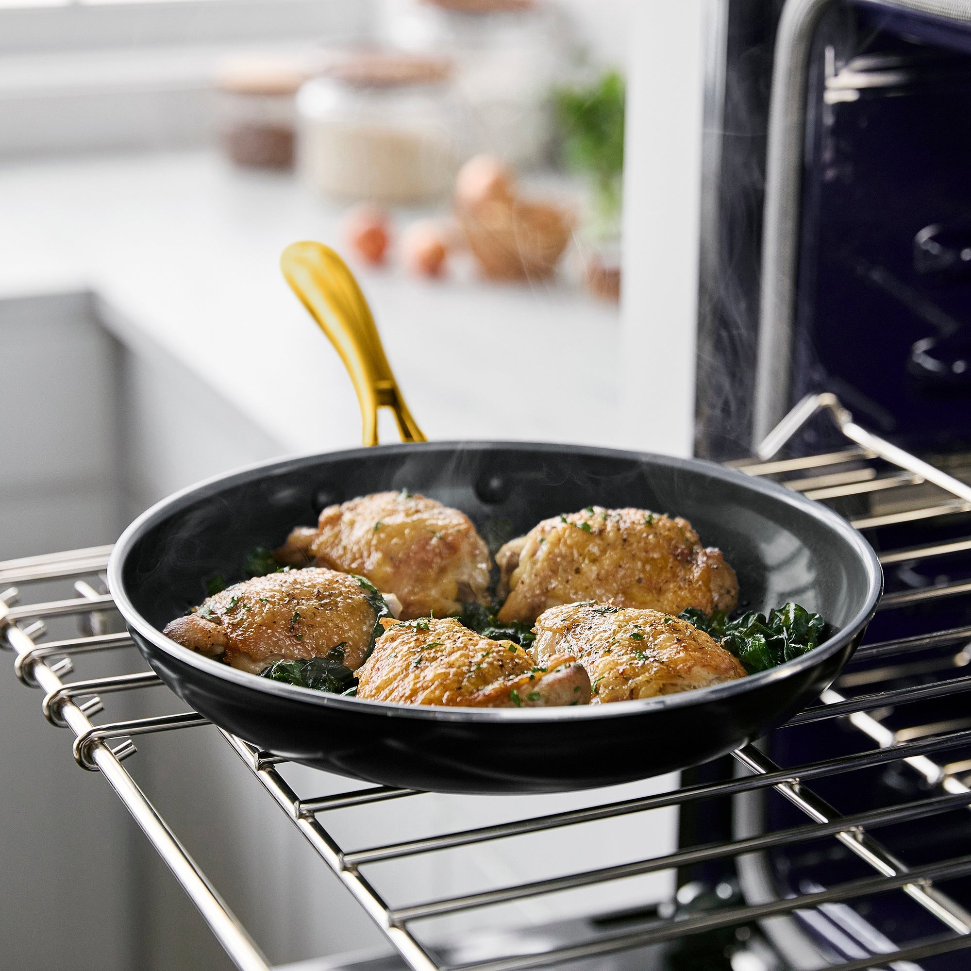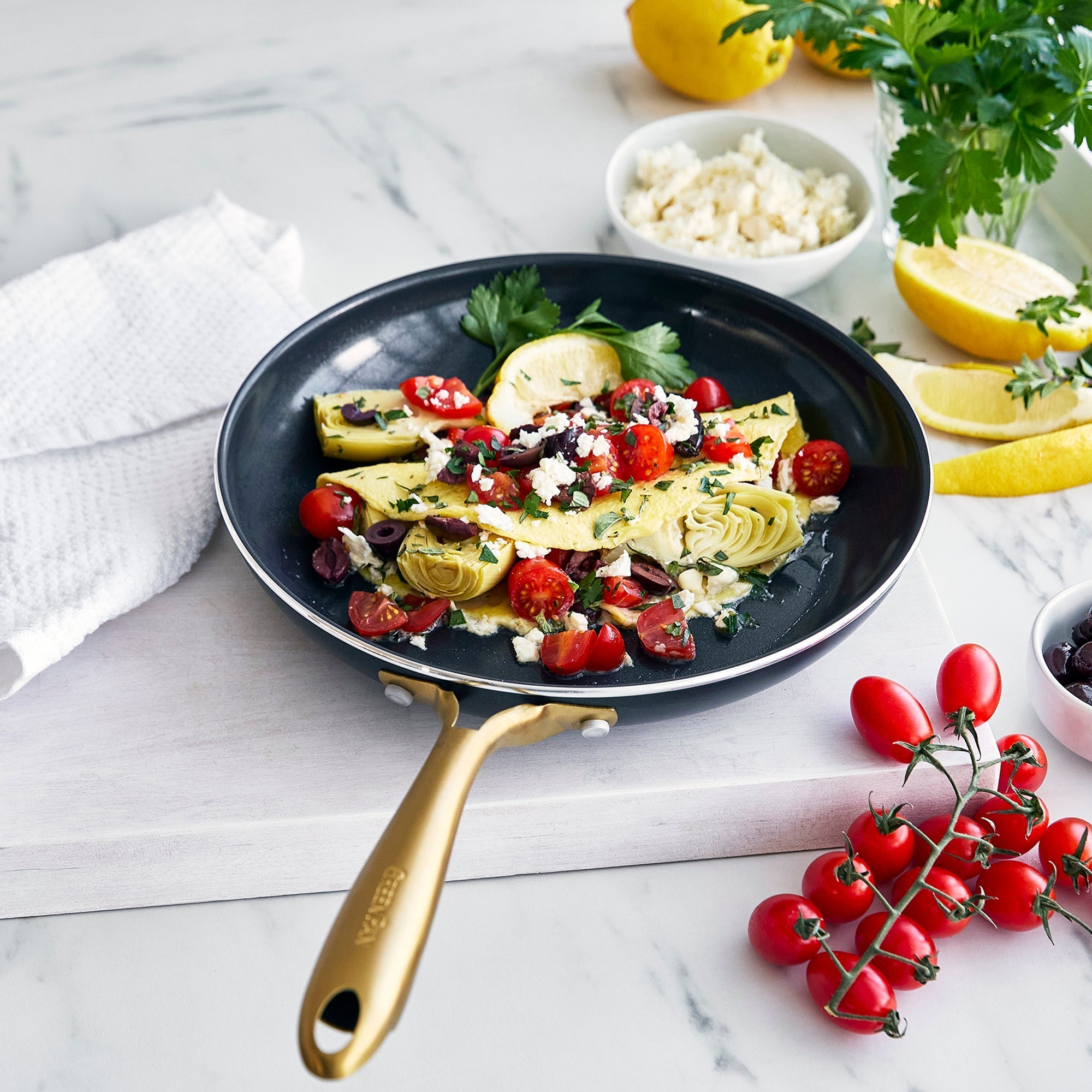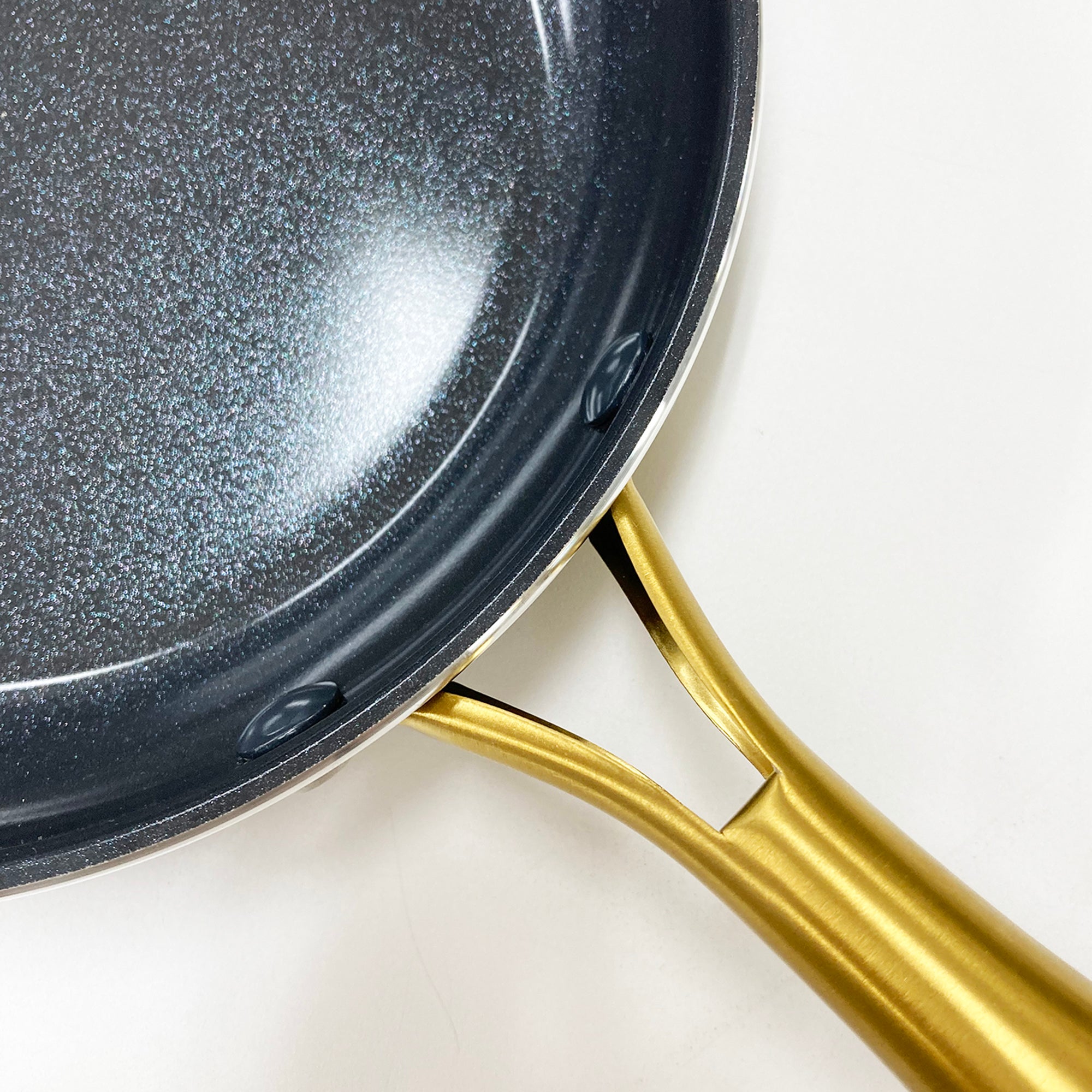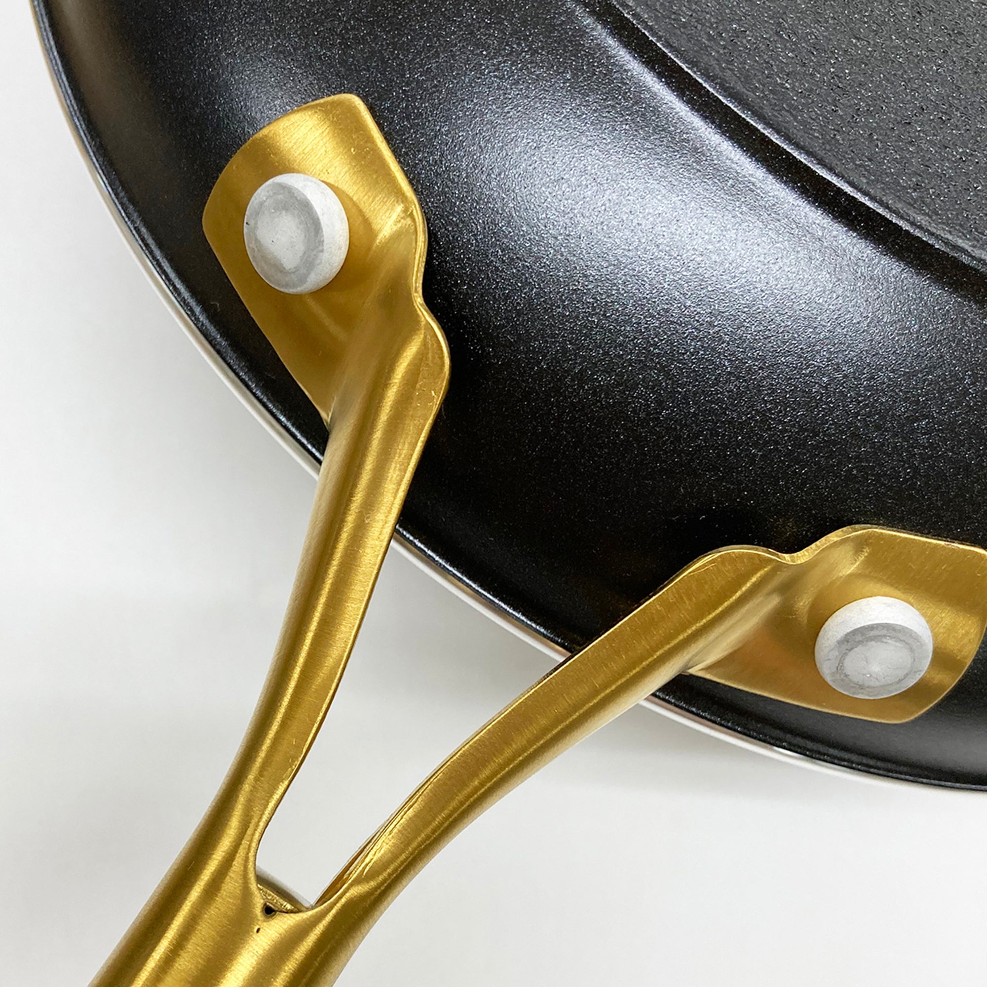 ブラック×ゴールドがスタイリッシュなSTUDIOストゥディオコレクション。 食卓にそのままサーブしても華やかさがある大人スタイルのストゥディオ。特長的なゴールドハンドルは、熱くなりにくいPVD加工を表面に施しています。さらにフライパンを軽くするために、ハンドルの仕様をステンレス板を丸く曲げて、内部を中空にしたデザインにしました。持った時の軽さは驚きです。特に女性やご年配の方にもおすすめです。毎日使うものだから軽さは嬉しいポイントですね。※ハンドルの縁を洗う際には、スポンジをご使用していただき素手があたらないようにお気をつけください。セラミックコーティングにはダイヤモンド粒子を配合しているので、熱伝導率に優れているので調理時間が短くなり美味しく仕上がります。ストゥディオコレクションはヨーロッパデザインを起用していおり、フライパンの深さは他のシリーズに比べて少し浅めになっています。※フライパンで煮物やワンポットパスタをご希望の方は、深さのあるメイフラワーをおすすめします。別売りのステンレスガラス蓋(ハンドル:ゴールド)とセットでのご使用をお薦めいたします。https://kurasso.woman.mynavi.jp/