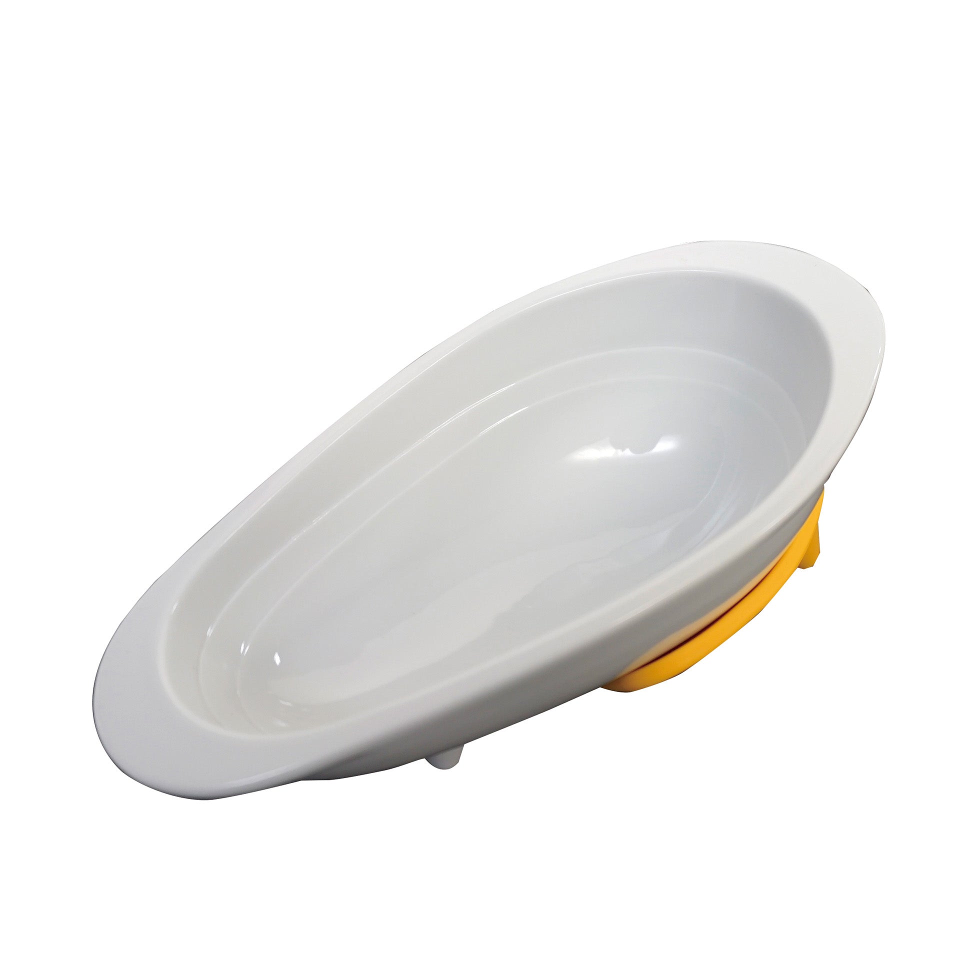 ミニチュアダックスフンドやトイ・プードルなど、鼻の長い犬が食べやすい形状を追求しました。アニマル工学の考え方から、これらの問題を解決し、より自然な動きでごはんを食べてもらえるよう工夫した新しい犬用食器「ワンプレ」です。電子レンジ加熱OK。調理・食事・保存まで一貫して行えます。
