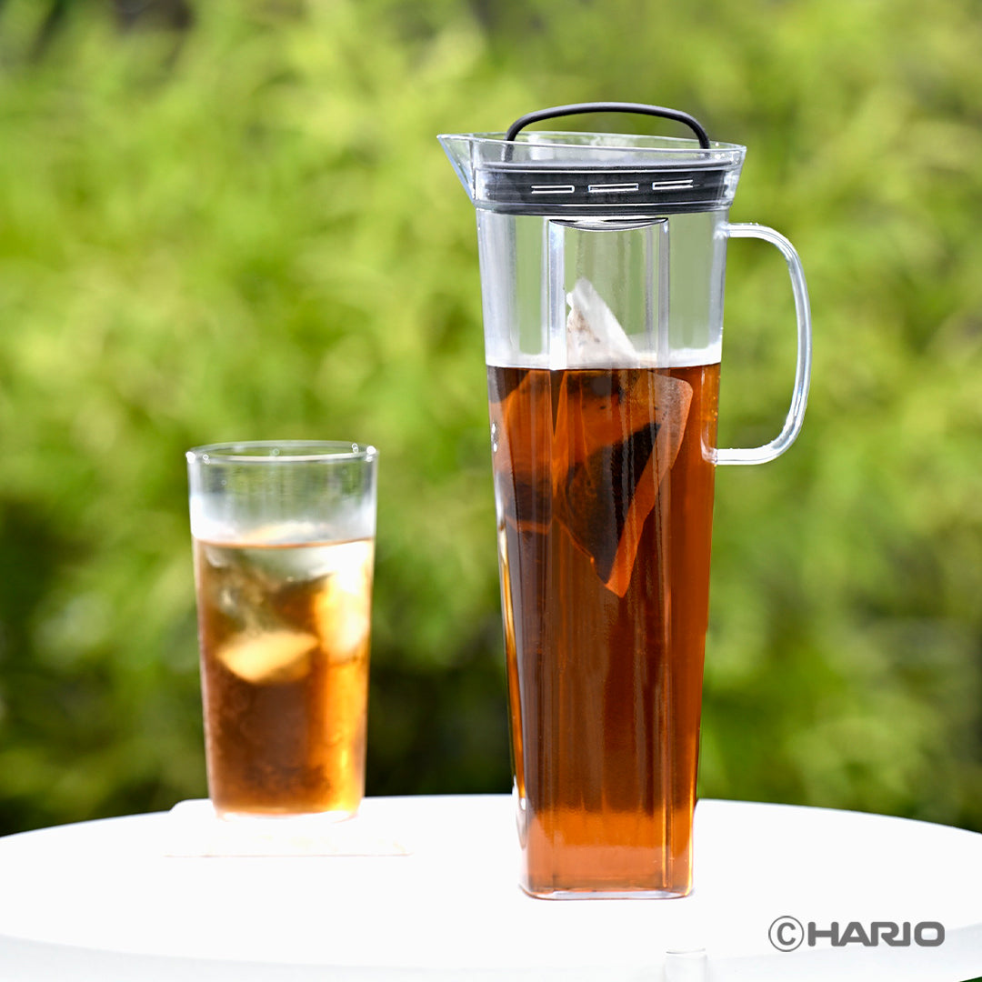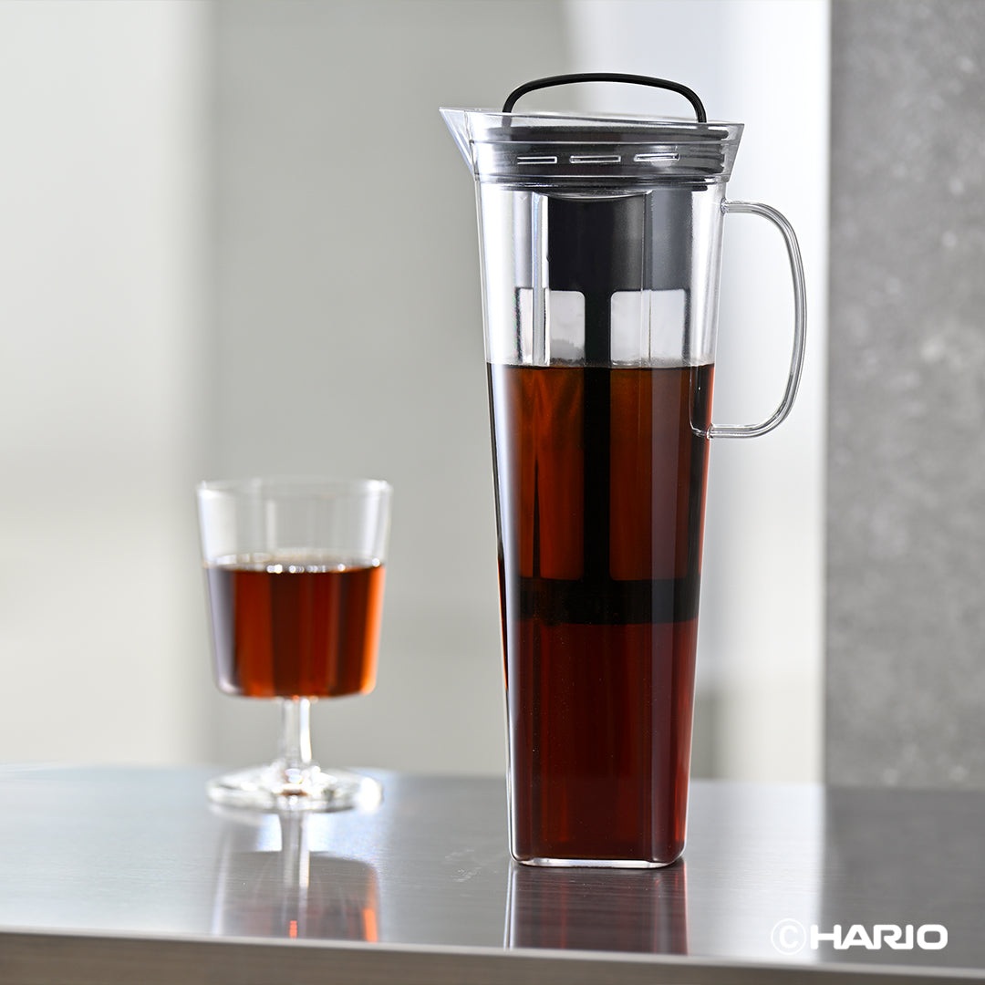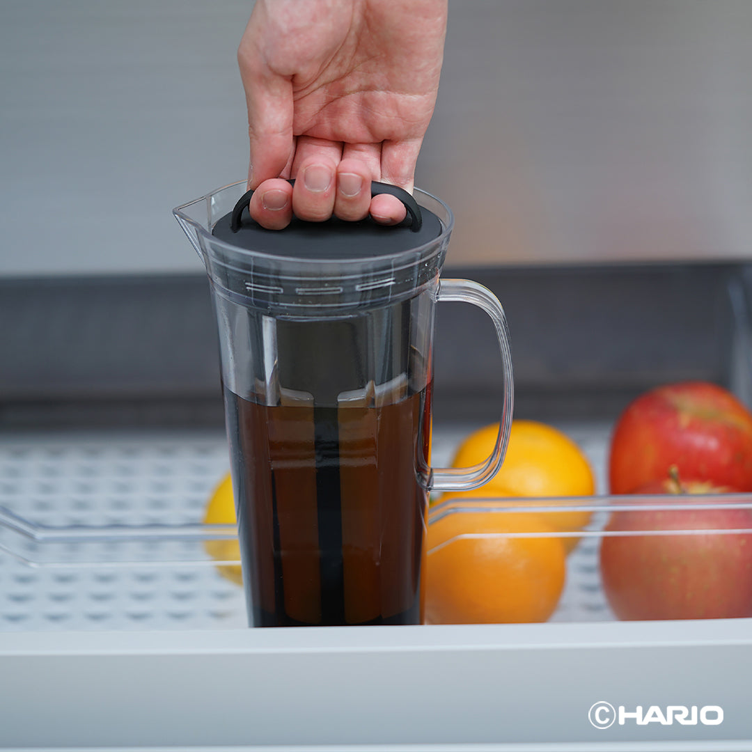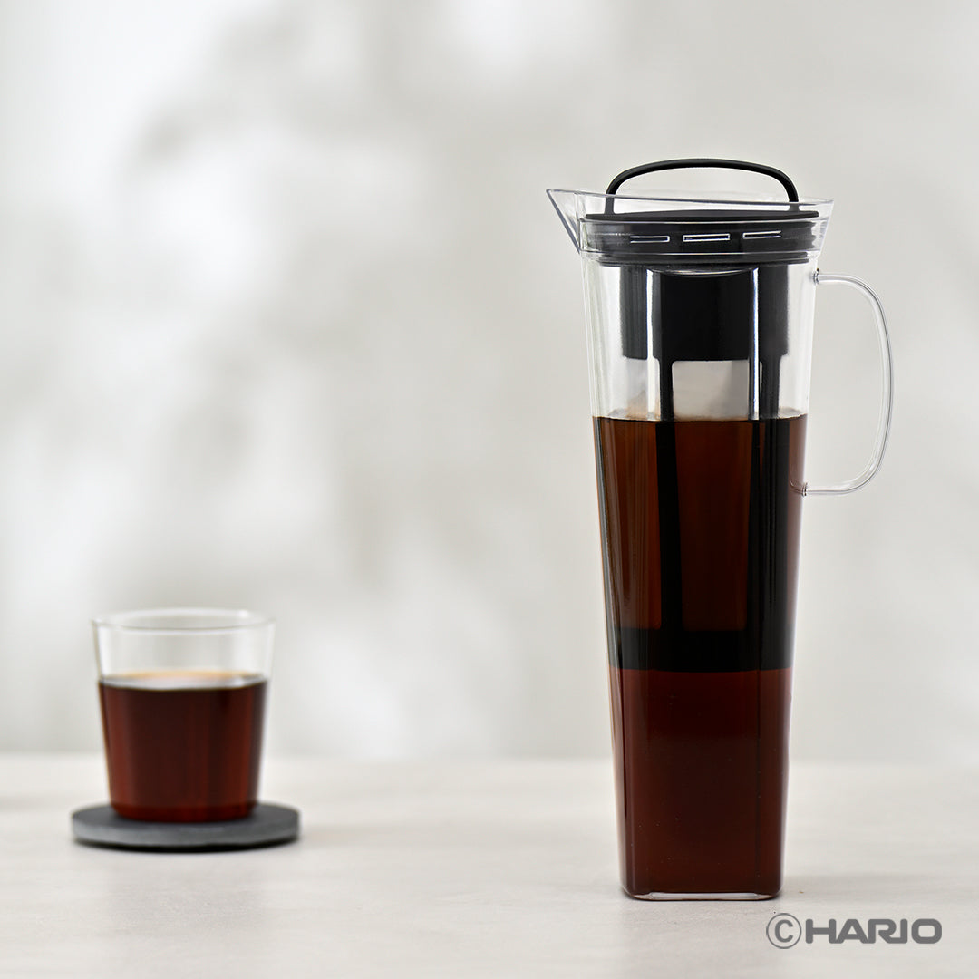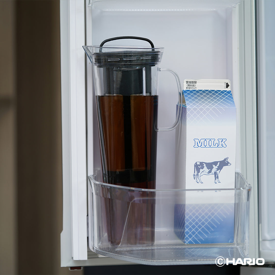 割れにくく注ぎやすいトライタン製水出しコーヒーピッチャー。便利なストレーナー付きで、水出しコーヒーやお茶が手軽に作れます。ストレーナーは底が外れる設計で、洗いやすくお手入れも簡単です。丈夫でガラスのような透明感が美しいPCT樹脂製。割れにくい素材なのでアウトドアのシーンでも使えます。スリムな形状で冷蔵庫のドアポケットに収納可能。底に向かって角型になっているため、横置き保存もできます。