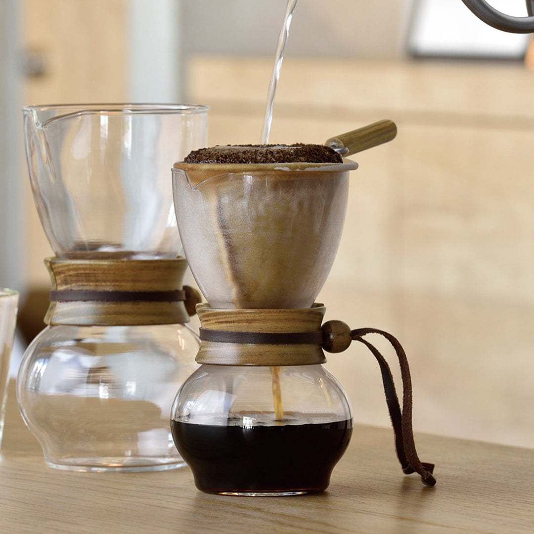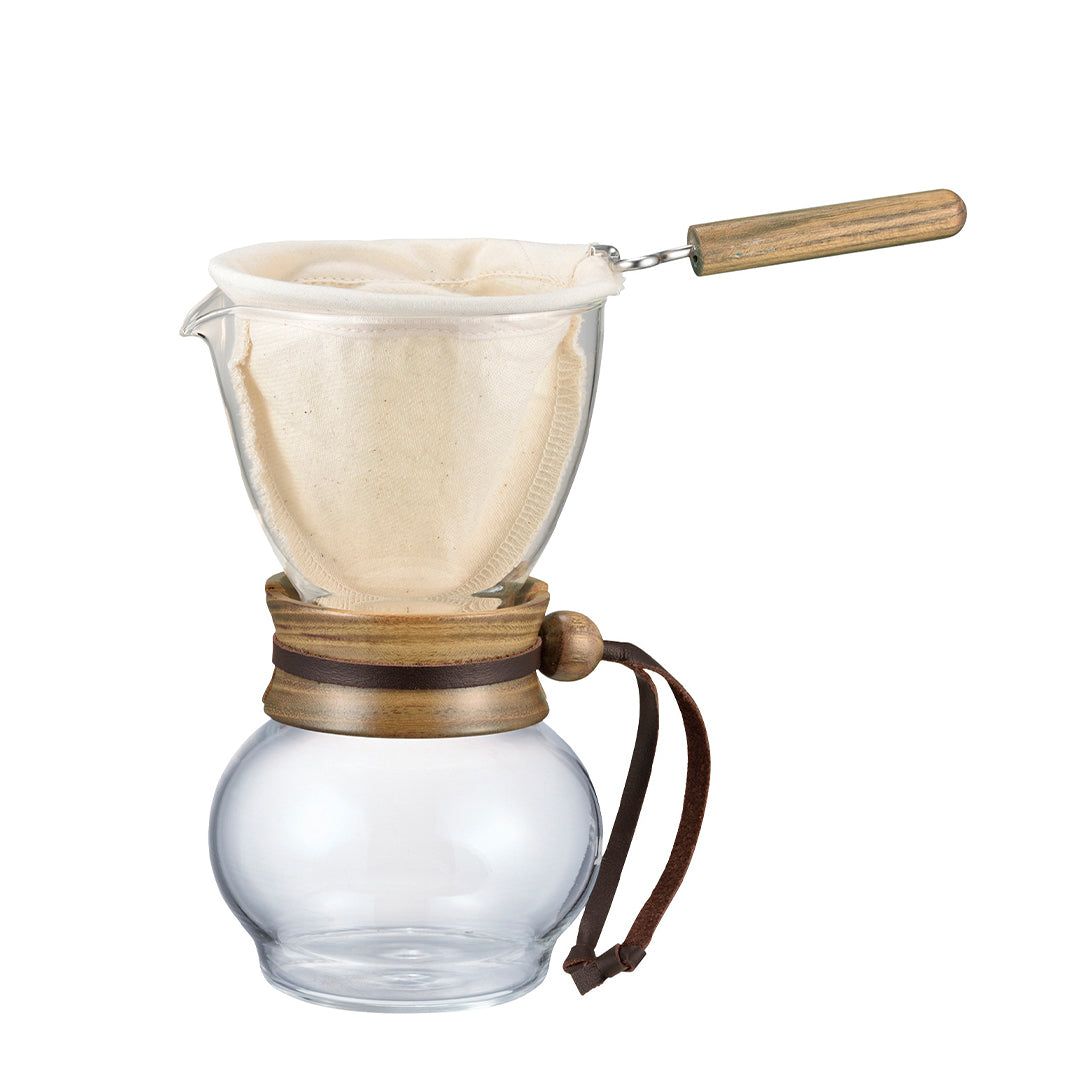 深みとコクが違う。本格ネルドリップ珈琲。キメの細かなネルを通してゆっくりと濾過された珈琲は、豆本来の持つ酸味、渋味、苦味、コクが失われません。ろか布はご使用後よく水洗いし、清水を入れた容器にひたして冷蔵庫で保管して下さい。これは、ろか布に残った珈琲豆の油分の酸化をふせぐためです。ろか器はネルが取り替えられます。
