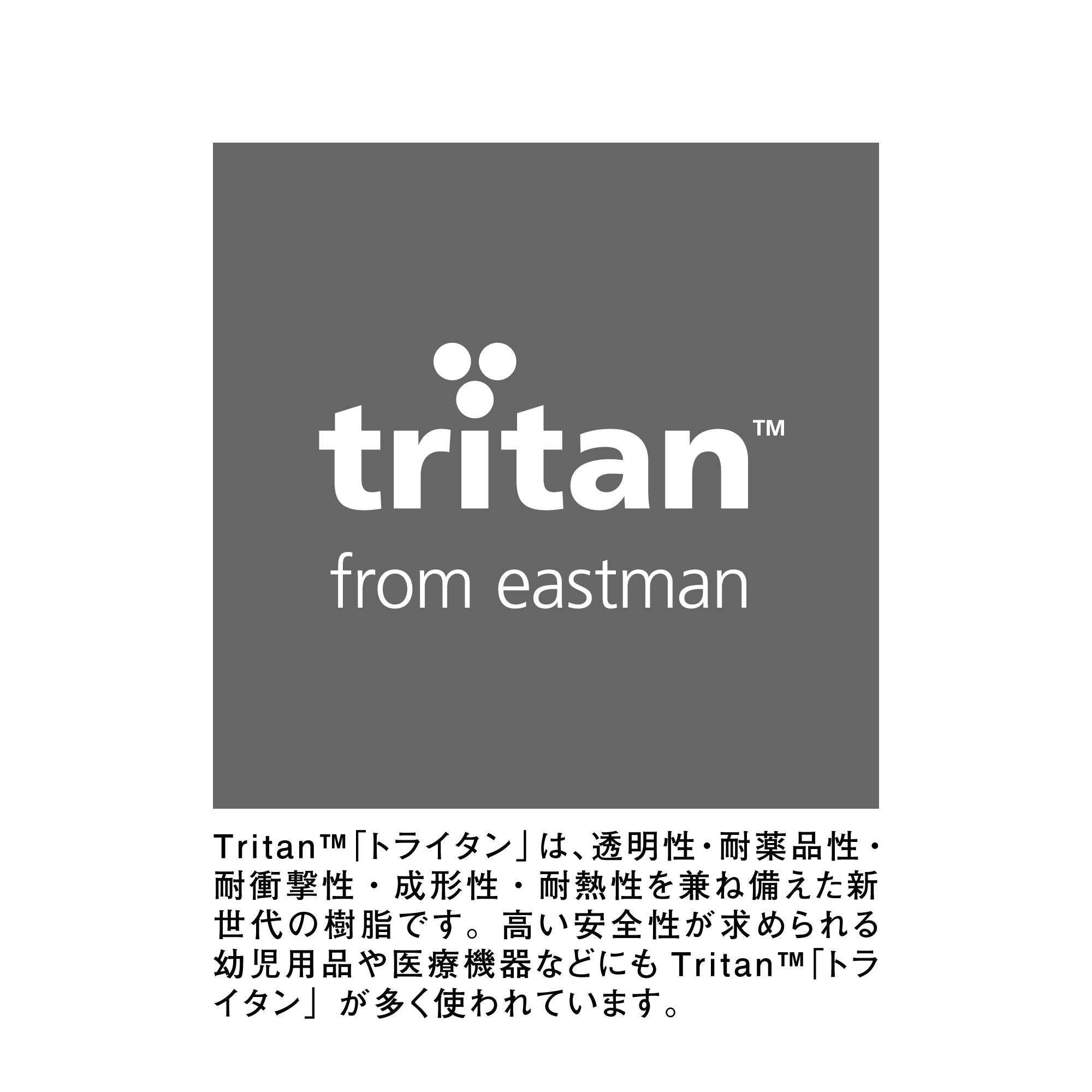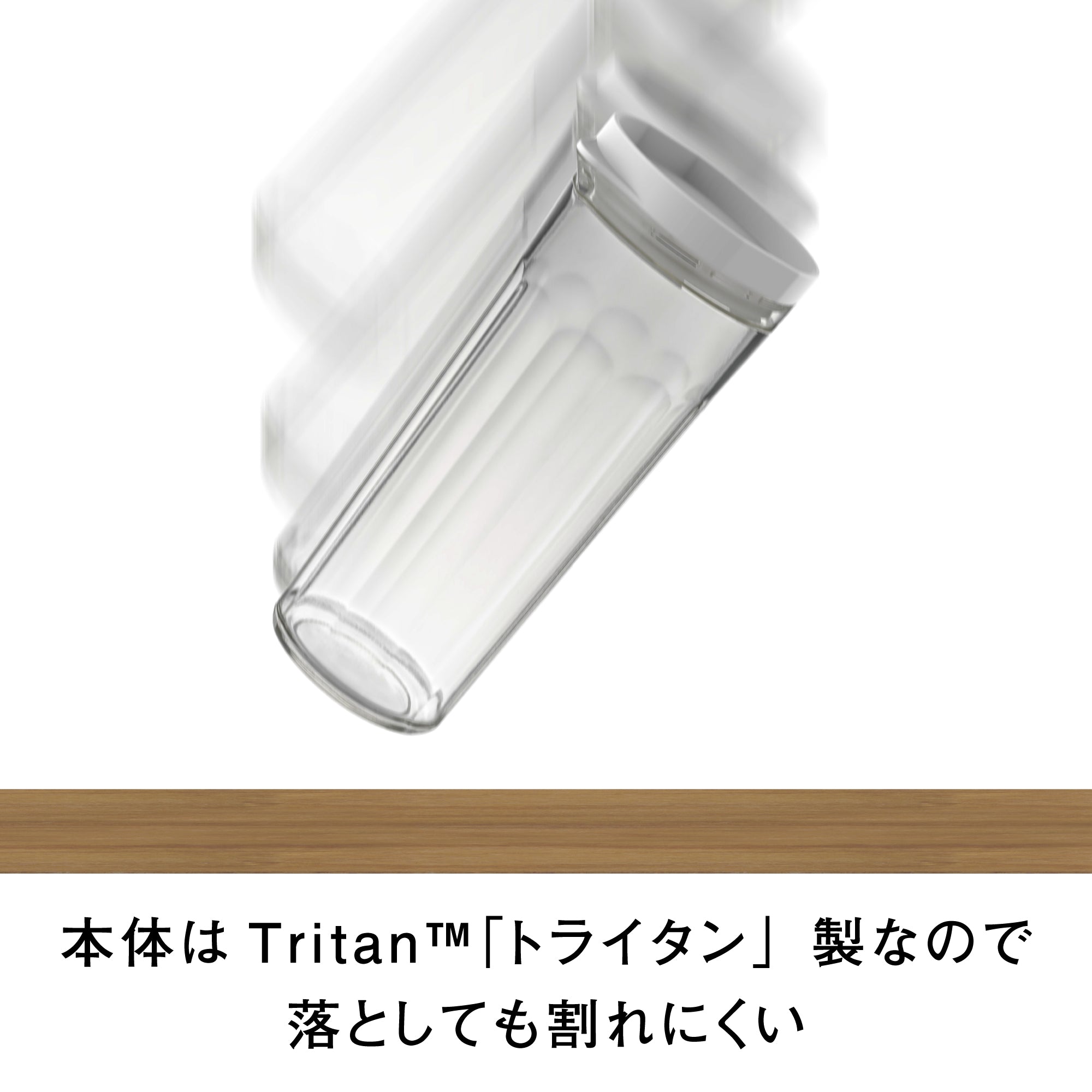 トライタン製の冷水筒 ・口径が広く洗いやすい形状・耐衝撃性に優れ、割れにくい・熱湯OK・冷蔵庫のドアポケットに収納でき、横置き保存もできます Tritan™「トライタン」は、透明性・耐薬品性・耐衝撃性・成形性・耐熱性を兼ね備えた新世代の樹脂です。高い安全性が求められる幼児用品や医療機器などにもTritan™「トライタン」が多く使われています。