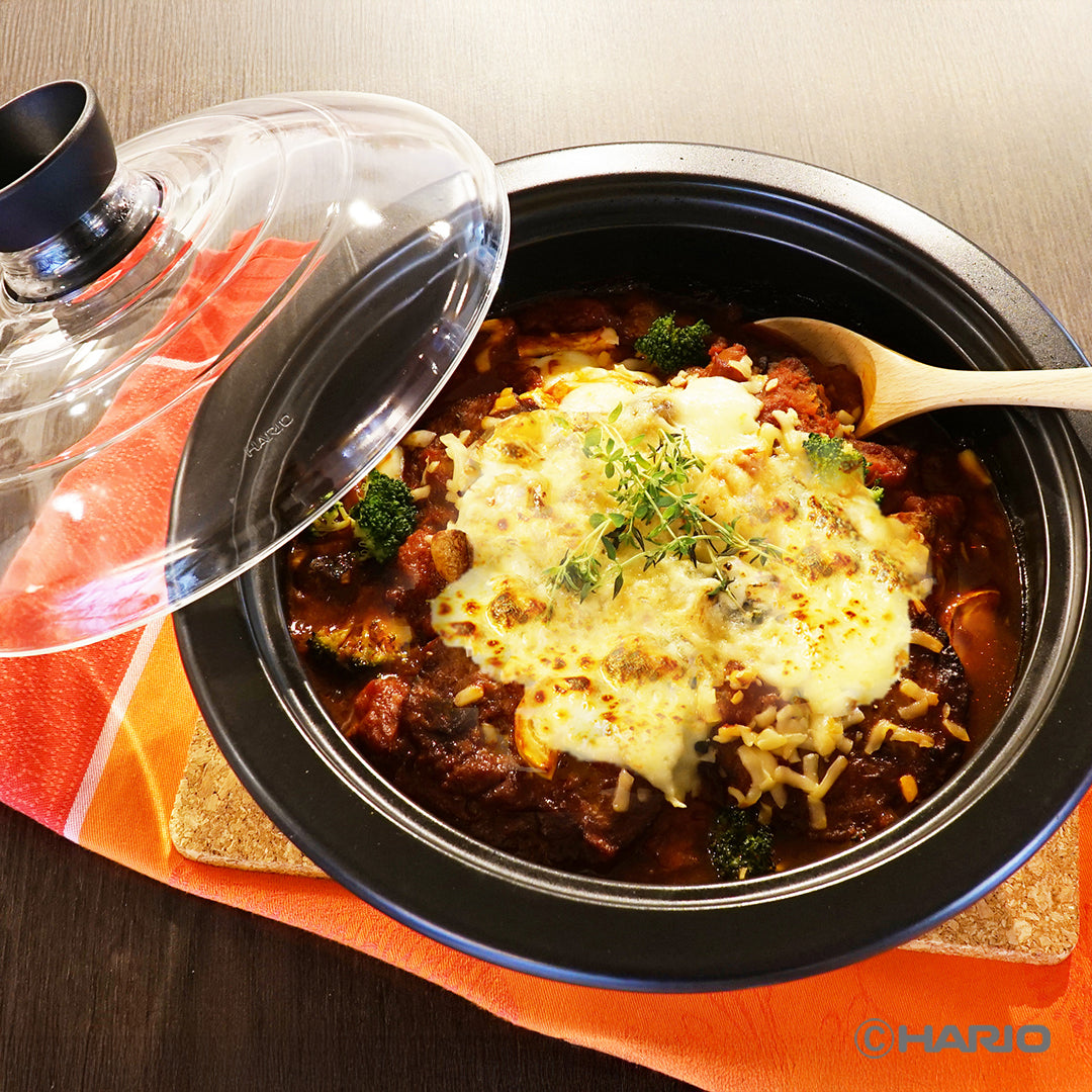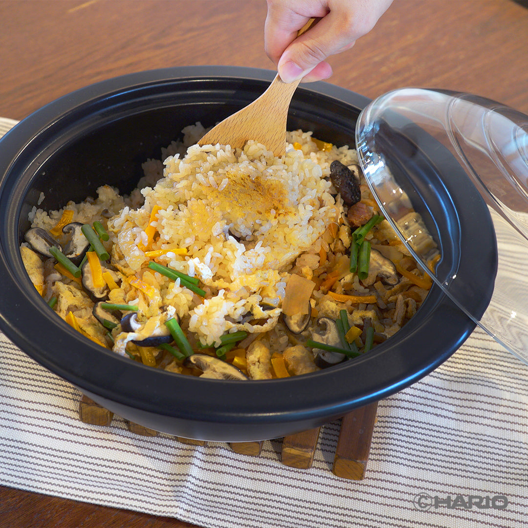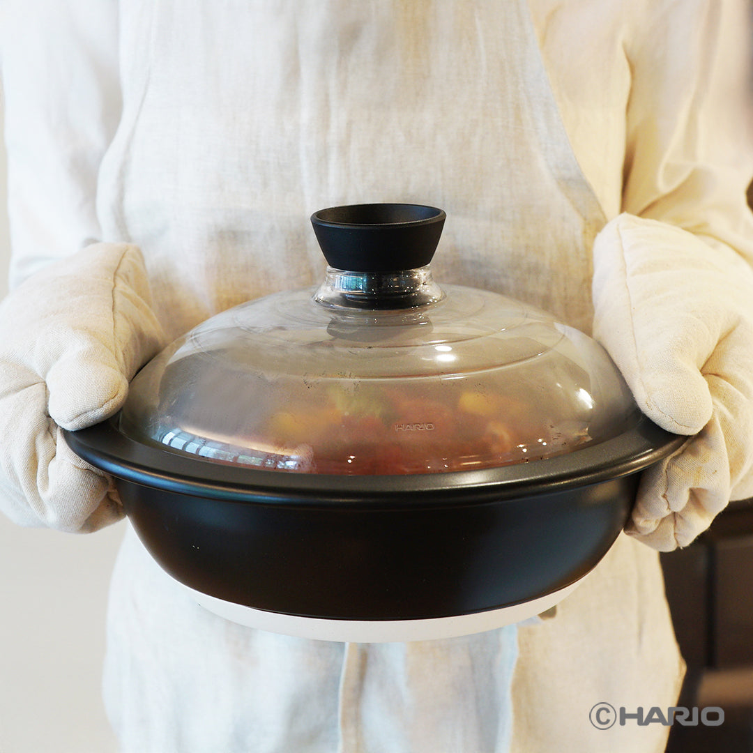 シンプルな形状で和食、洋食、どんなシーンにも合わせやすいデザイン。中身が見え耐熱ガラス製のフタで普段使いしやすい土鍋です。