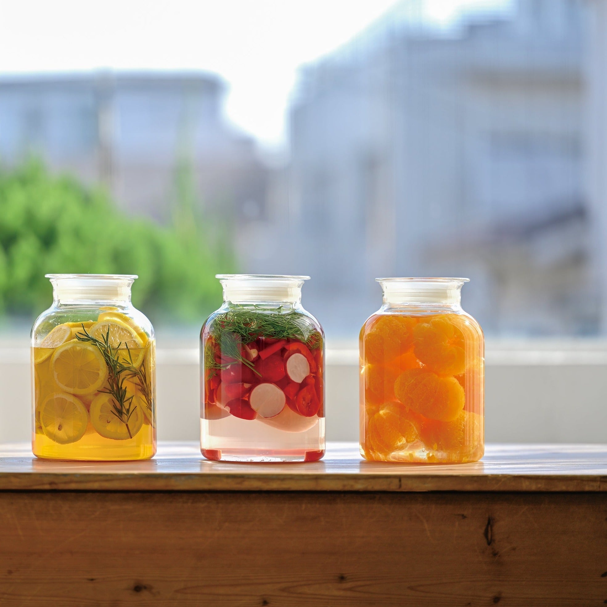 季節の手仕事を大切にして、ひと手間を加えることで生活に彩りを添えてくれるシリーズ「ガラスのある生活」。耐熱ガラス素材にこだわり、透明でシンプルな美しさと機能性をあわせ持つデザインです。実用容量1リットルと大きいので色々な漬物容器として活躍。パッキン以外はオール耐熱ガラスで外から中身の確認ができます。熱湯使用が可能。