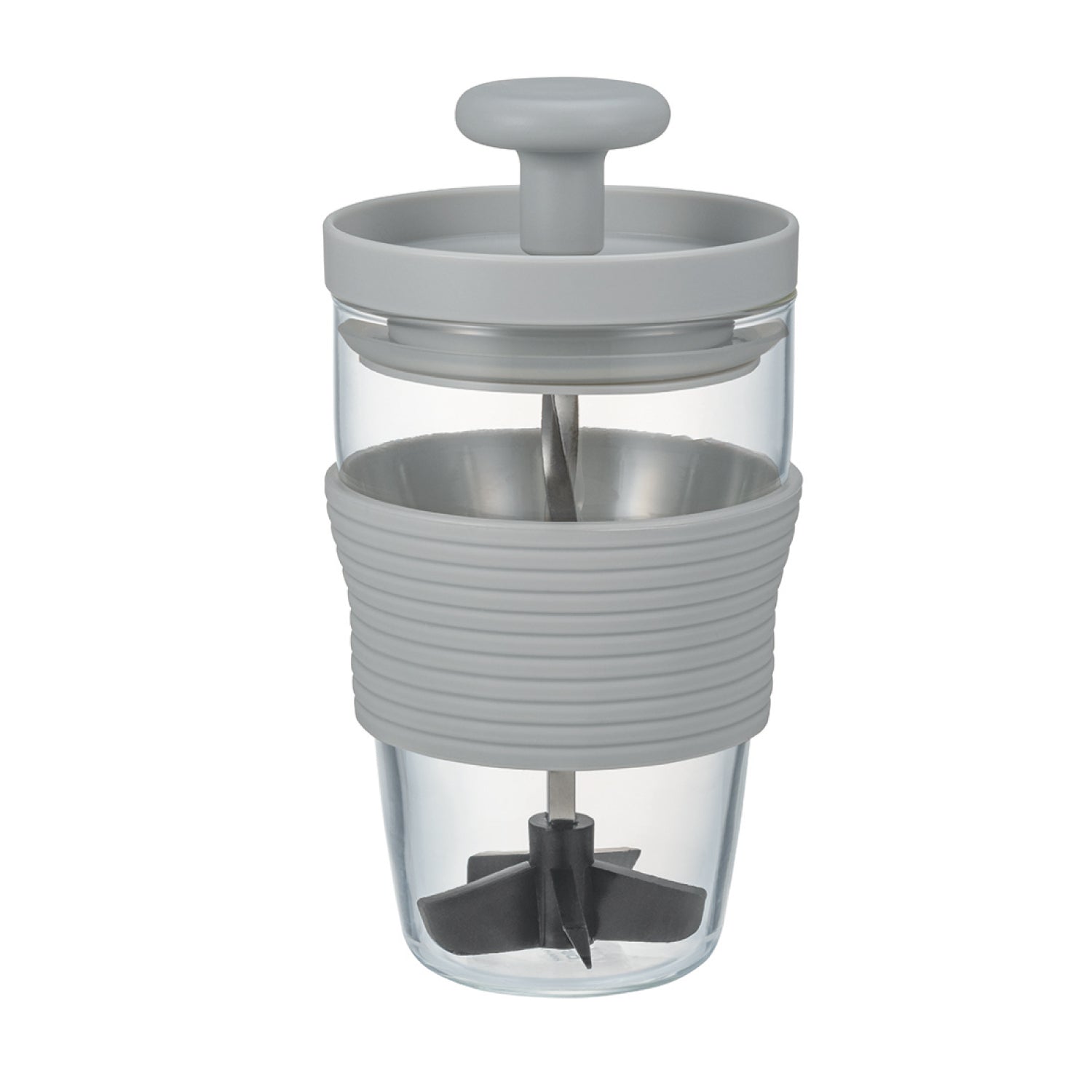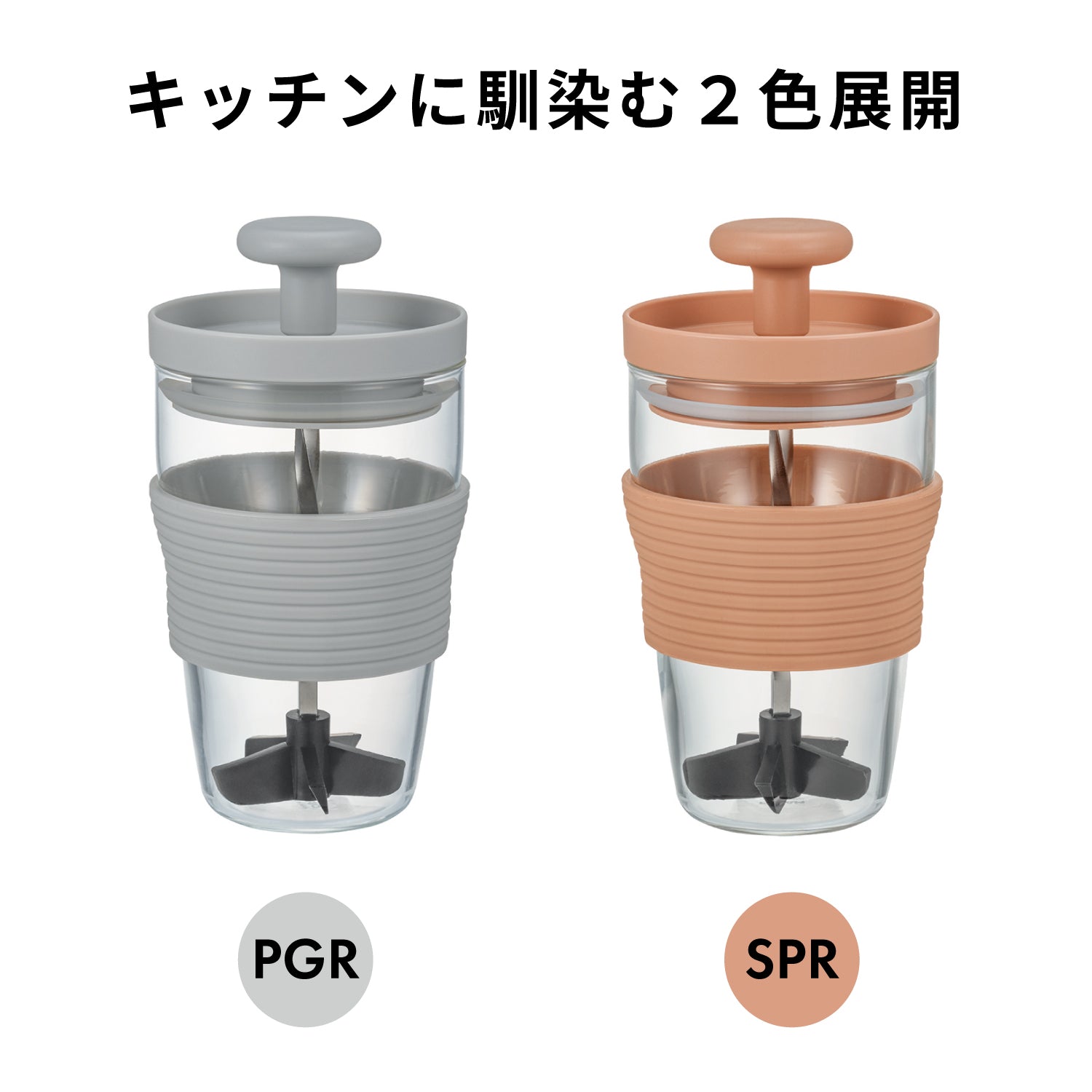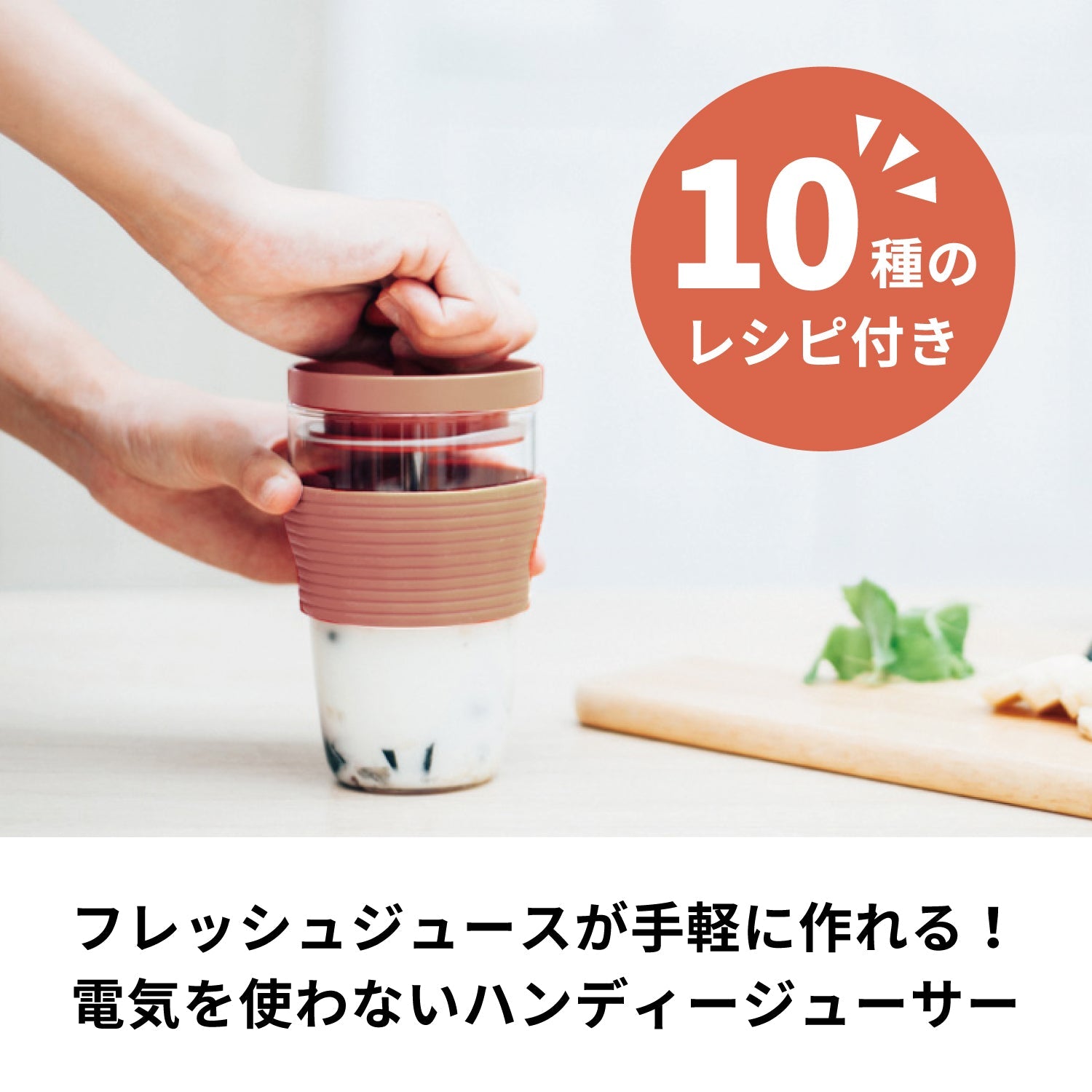 フレッシュジュースが手軽につくれる、ハンディージューサー。※熟していない果物や硬い食材は潰れない場合があります。パーソナルタイプのハンディージューサーです。スパイラルシャフトを上下させる事により刃の部分が回転して果肉をすり潰し、撹半します。一杯分のフレッシュなジュースを手軽につくり、そのまま本体をグラスとして使用できます。手軽にお好みのフレッシュジュースをお楽しみいただけます。