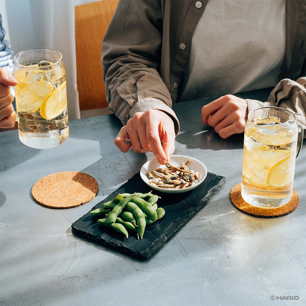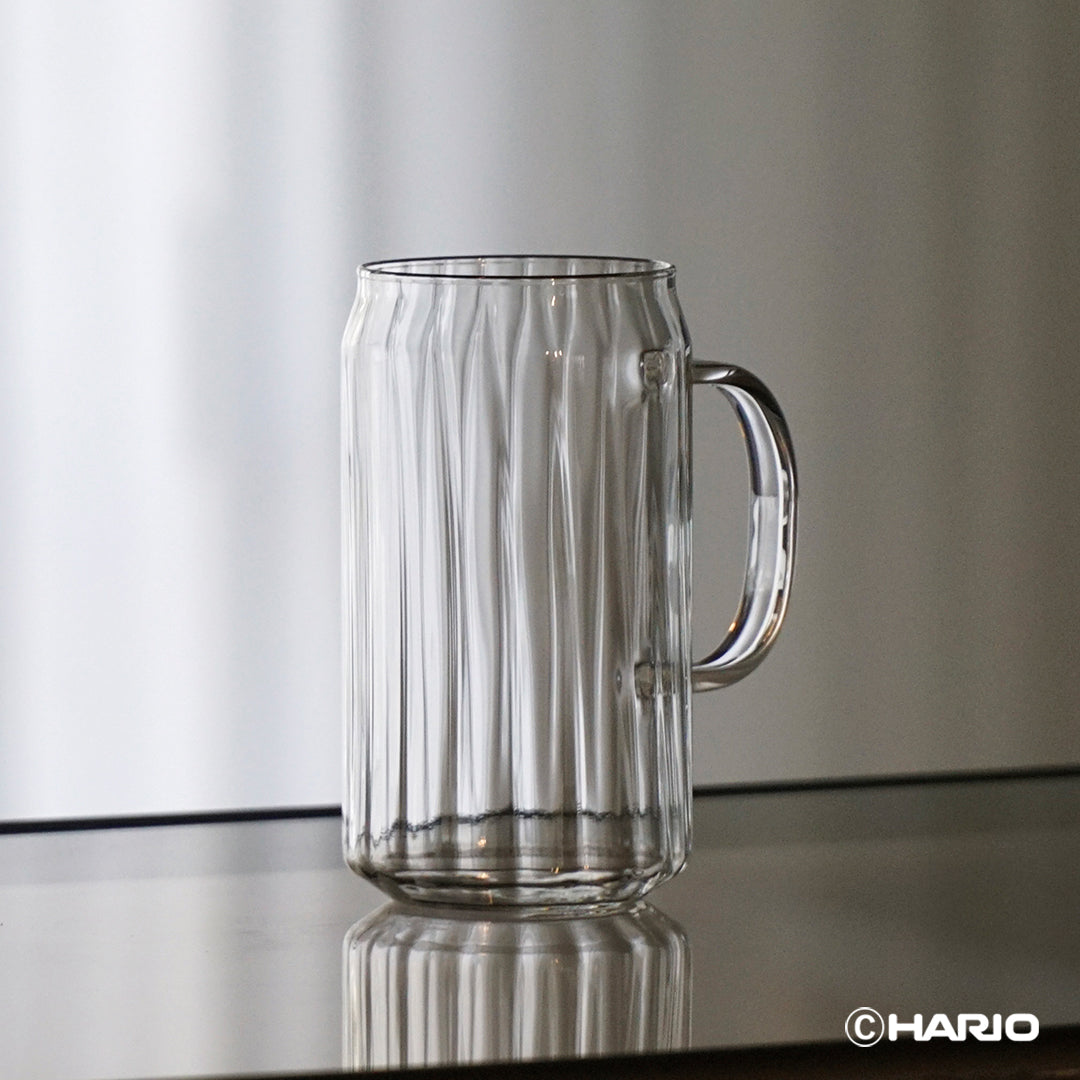 ビール缶型の耐熱ガラス製グラス。ビールの350mL缶がちょうど入るサイズです。本体が縦のラインが入ったモールグラスになっておりガラスの美しさが際立ちます。耐熱ガラス製なので電子レンジや食洗機でもご使用いただけます。