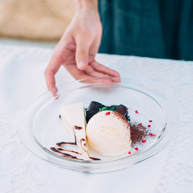 耐熱ガラス製のパイ皿。使いやすいサイズでパイ皿としても、日常使いのお皿としてもお使いいただけます。耐熱ガラス製の透明感がお料理の彩りを引き立てます。
