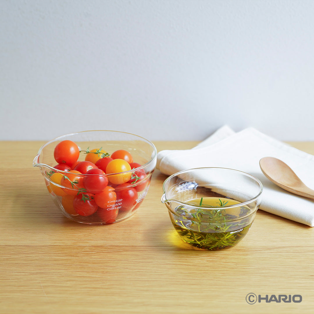 注ぎ口がついた、多機能ボウル。調理やお菓子作りに便利な注ぎ口の付いた片口ボール混ぜる・注ぐだけでなく、電子レンジでの下ごしらえも可能です。電子レンジ・オーブンOK200mL/400mLサイズの2個セット。