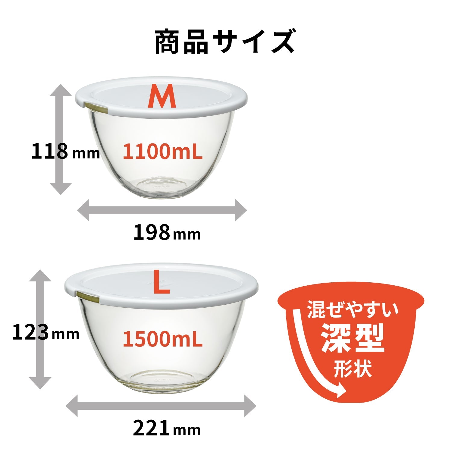 レンジフタ付き耐熱ガラス製ボウル 2個セット