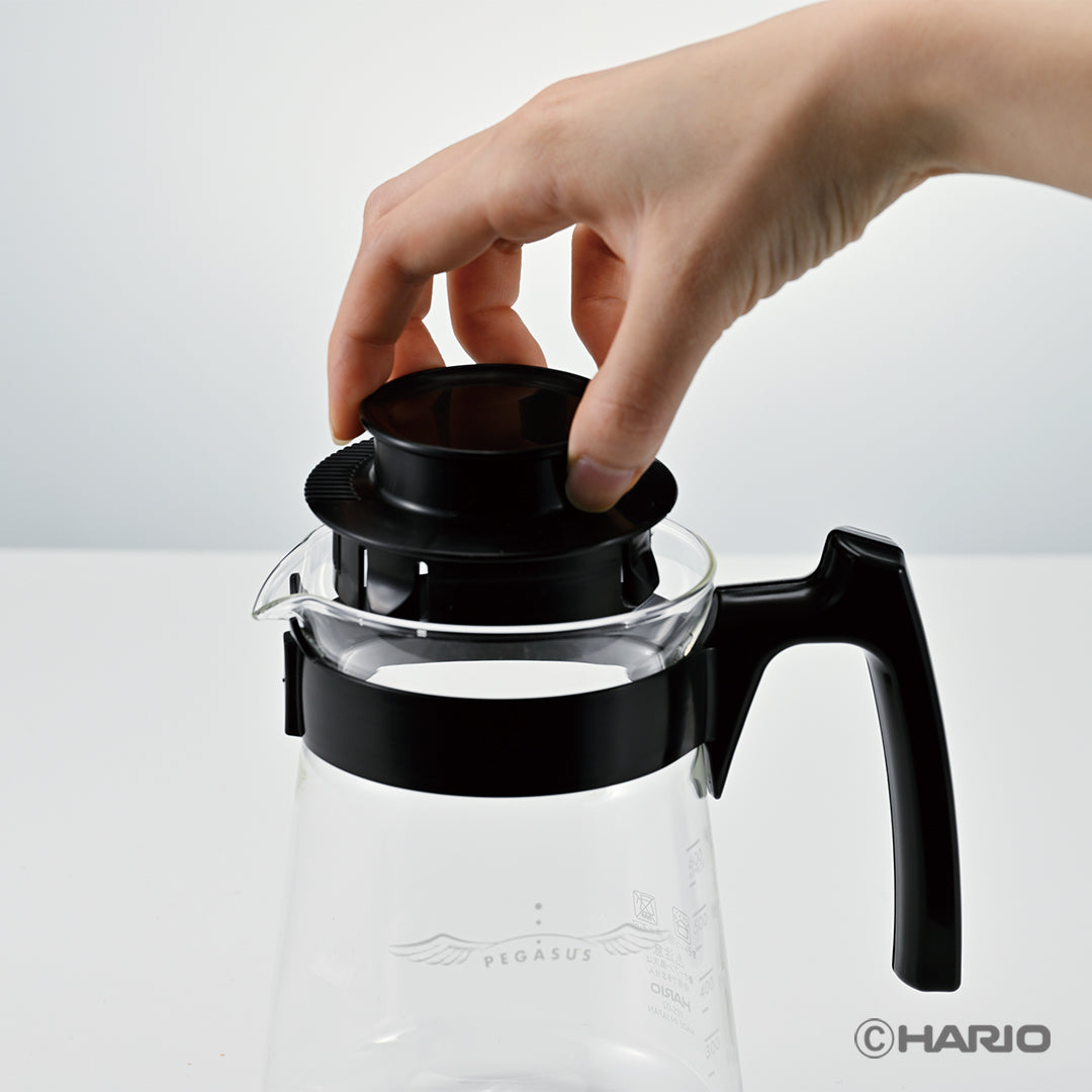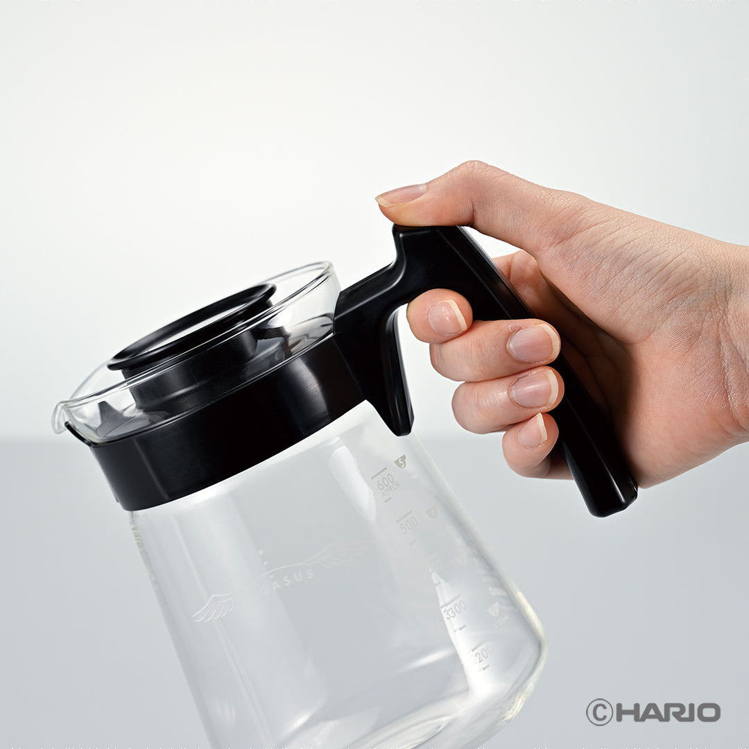 たて型でコンパクトな耐熱ガラス製コーヒーサーバーです。取り外ししやすいツマミフタ。フタは裏返すと簡易的なドリップトレイとして使えます。ハンドルも大きく持ちやすいデザインにしました。