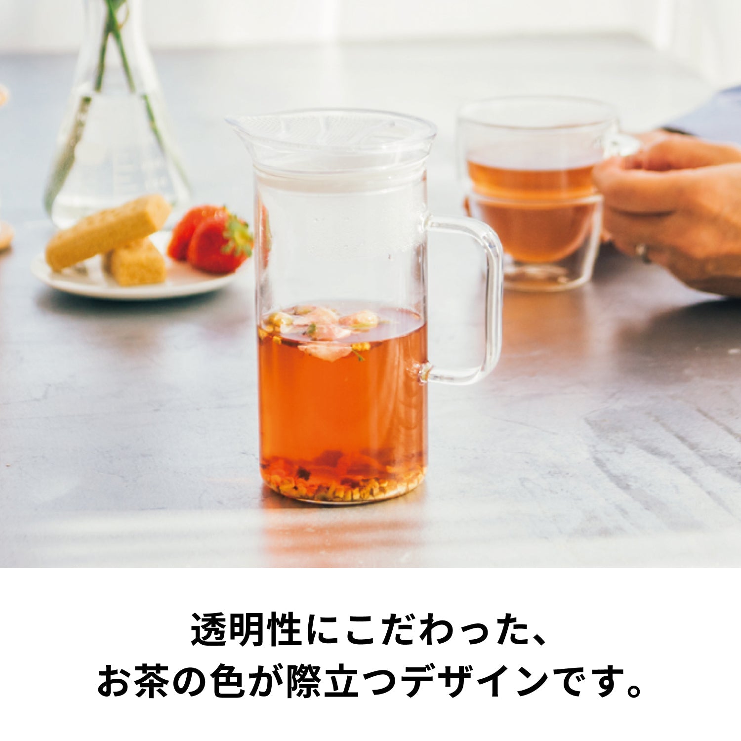 日常の中で自分を取り戻すために生まれた、シンプルな美しさと機能性を揃えたシリーズ『Simply HARIO』フタをなくしてダイレクトに注げる、フィルタートップのティーメーカー。透明性にこだわり、お茶の色が際立つデザインです。注ぎ口にフィルター機能が付いており、パーツが少なくお手入れが簡単。片手で注げる手軽さに加え、スリムで収納もコンパクトです。茶葉と一緒にお好みのフルーツを入れた、フルーツティーもおすすめです。