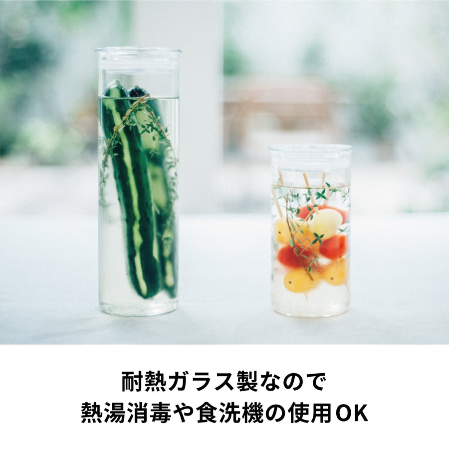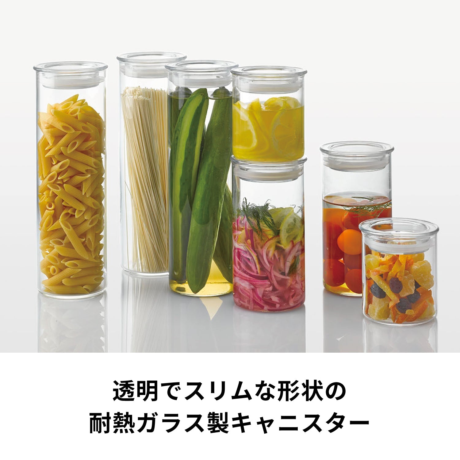 スリム形状ですっきり保存できるスキニーキャニスターオールクリアなので清潔感があり、ドライフーズから野菜漬けまで多様にお使いいただけます。※本商品は梱包資材で包み発送いたします。個箱はついておりませんのでご了承ください。