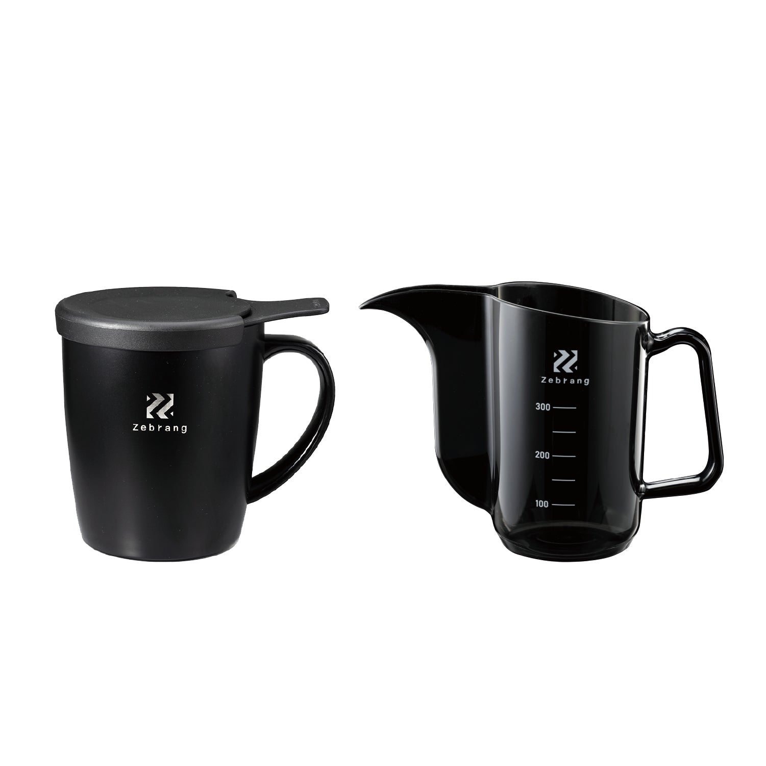 湯量が計れてお湯の流れが見えるドリップポット「計量ドリップポット Zebrang」とひとつで二役のマグ&コーヒーメーカー「真空二重マグコーヒーメーカー Zebrang」の2点セットです。