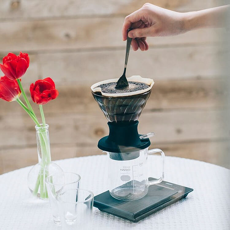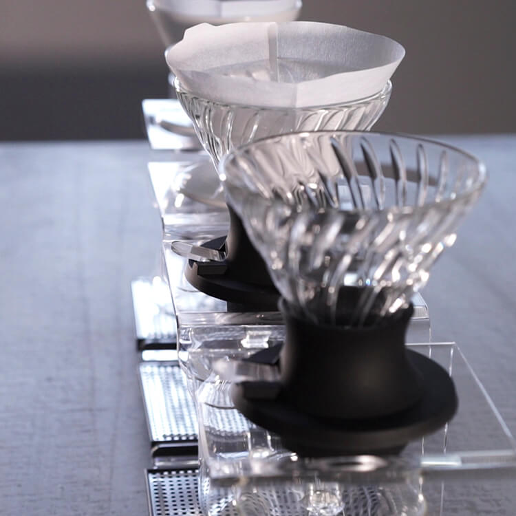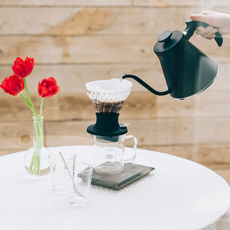 コーヒー粉をお湯に浸漬してから抽出するドリッパー。スイッチを押してドリップするので、どなたにでも均一な抽出が可能です。創業1921年。日本で唯一、耐熱ガラス工場を保有しているメーカーです。ガラスに限らず、家庭で便利に愛される商品づくりを目指して、さまざまな素材を用いて幅広い商品展開を行っています。粉を入れる前に熱湯を一度まわしかけドリッパーとサーバーを温めます。粉を入れてお湯を回しかけたら後は待つだけ。しばらく待ったらスイッチを押して抽出するだけ。