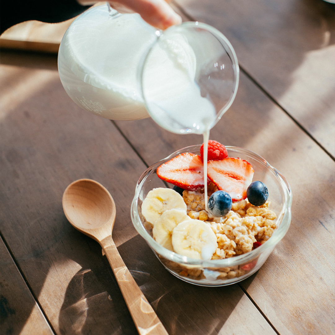 耐熱ガラス製のスイーツボウル。上から見るとお花の形状で小鉢としてもちょうどいい大きさ。電子レンジ・オーブン・食器洗い乾燥機OK。※個箱は付いていません。