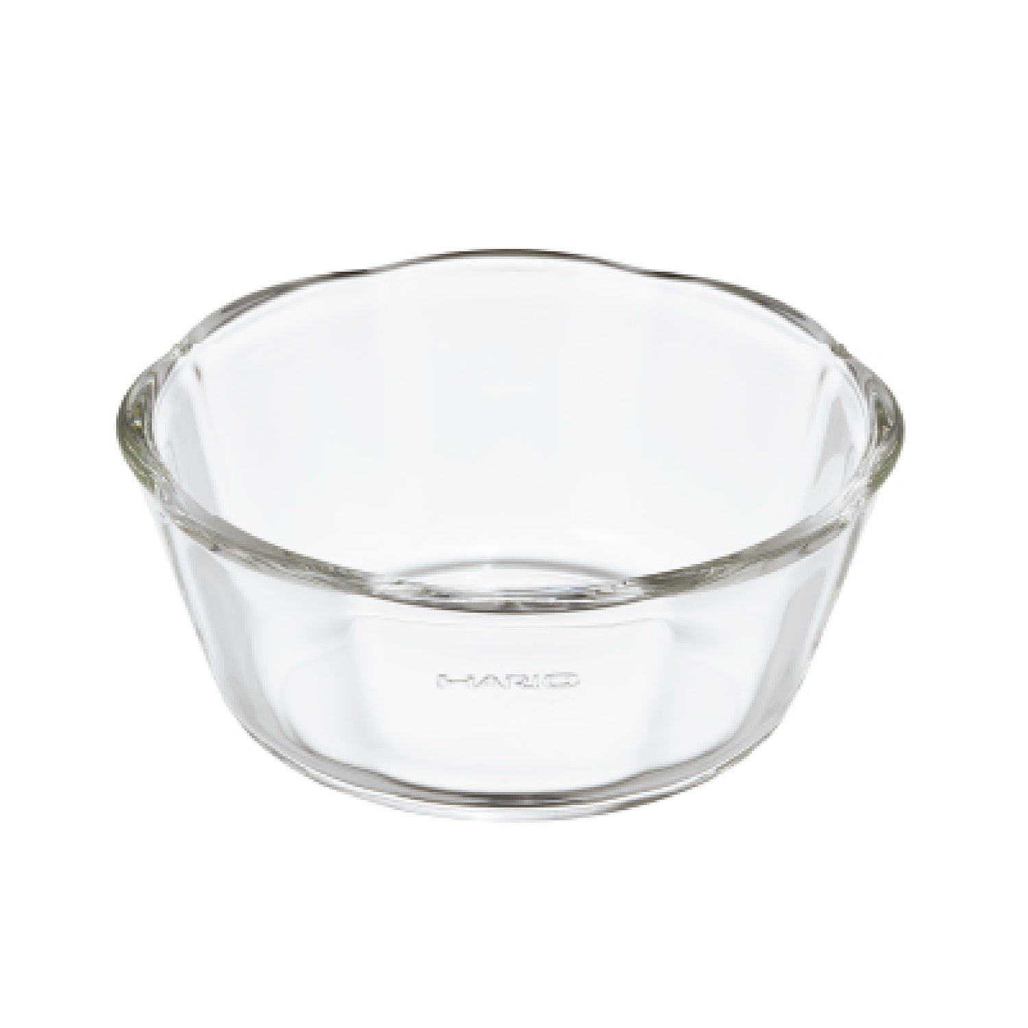 耐熱ガラス製のスイーツボウル。上から見るとお花の形状で小鉢としてもちょうどいい大きさ。電子レンジ・オーブン・食器洗い乾燥機OK。※個箱は付いていません。