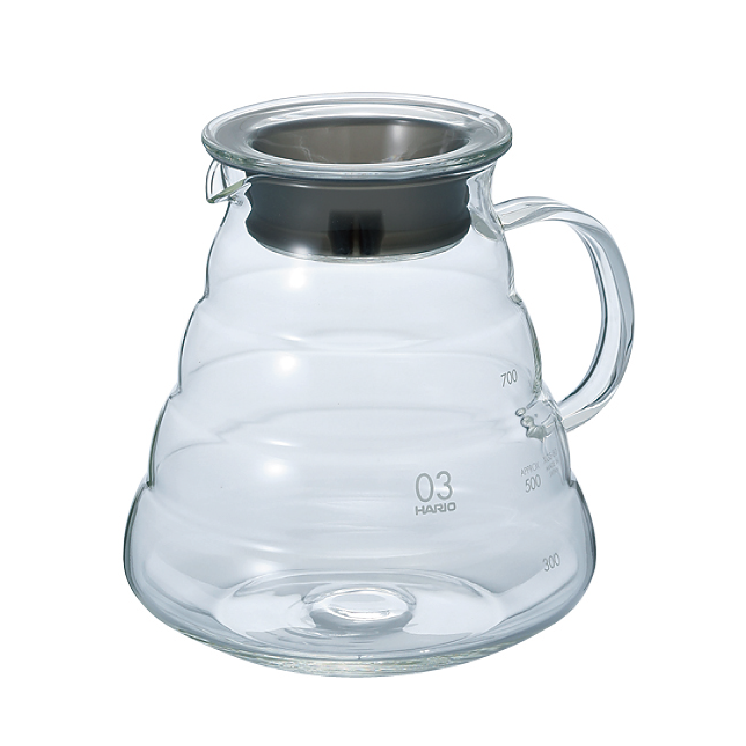 オール耐熱ガラス製のサーバーです。ポット・フタとともに耐熱ガラス製のサーバーです。フタにはシリコンパッキン付きの安心設計です。V60シリーズのサーバーとして、フタの上にV60ドリッパー(VD01、02、03)がのせられるデザイン。フタをしたまま電子レンジOK。※V60シリーズ「03」サイズ対応のサーバーです。