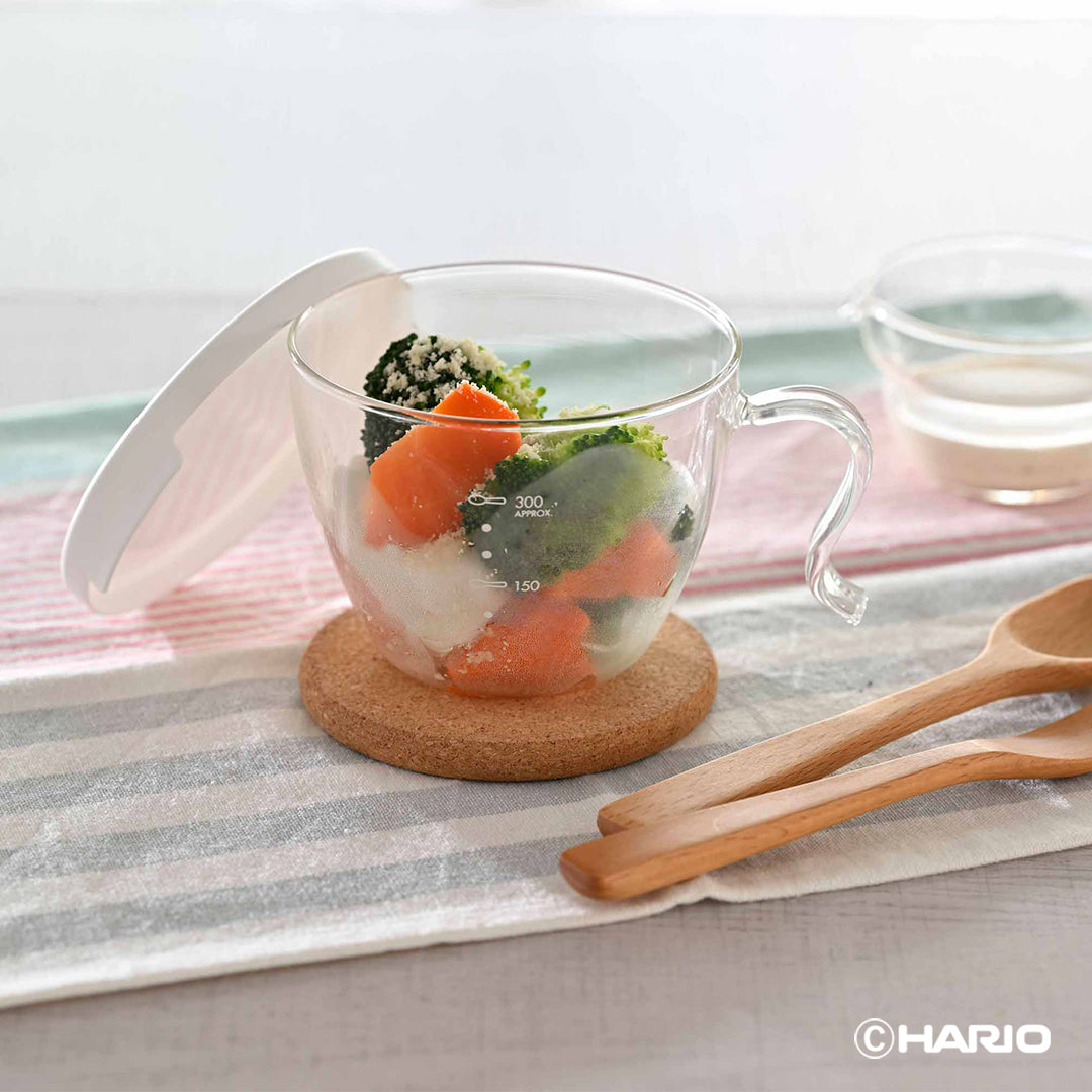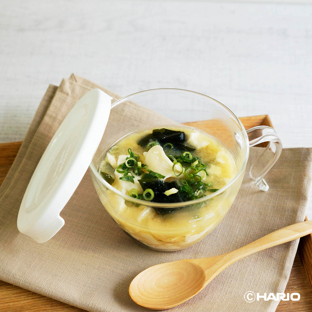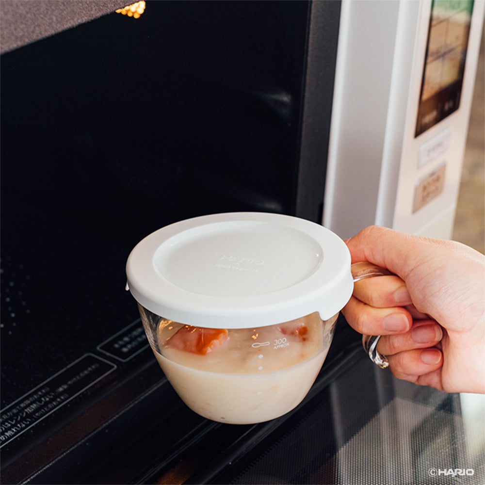 電子レンジで簡単。お味噌汁や一品おかずが電子レンジでつくれるレシピ付き。ちょっと一品ほしいときに、電子レンジで調理してそのまま食卓へ。フタと取っ手がついていて中の食材が見えるので、保存容器としてもお使いいただけます。