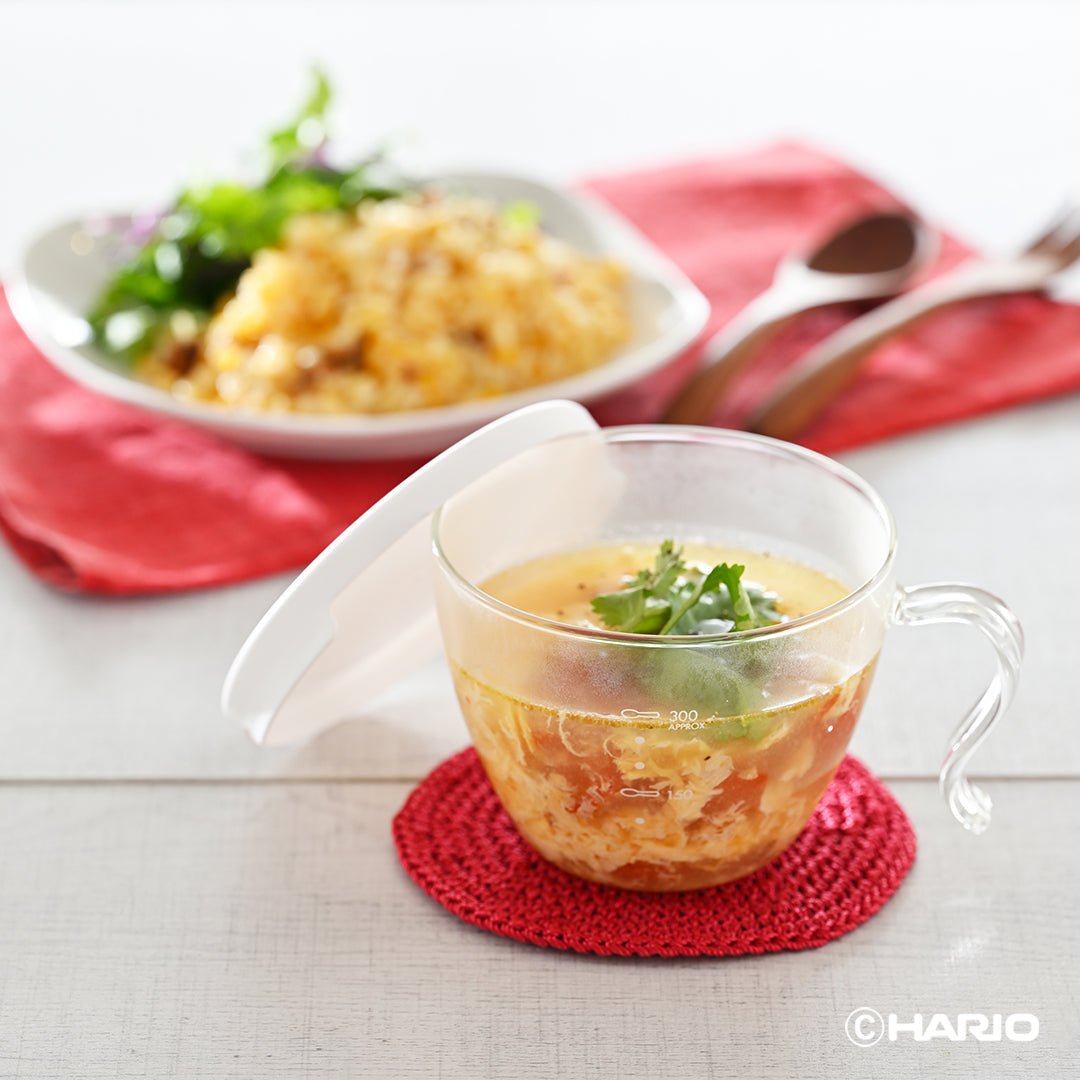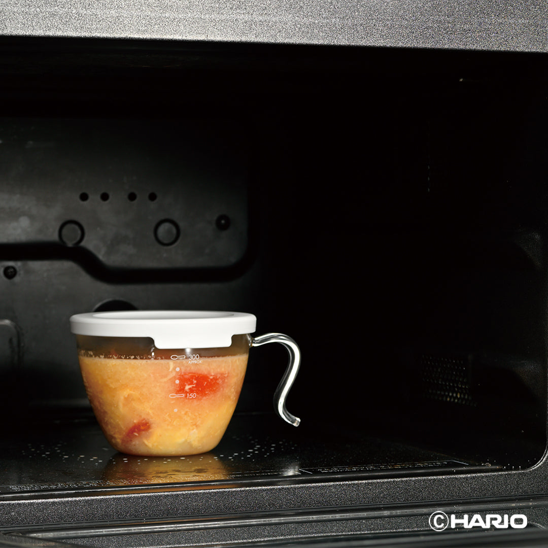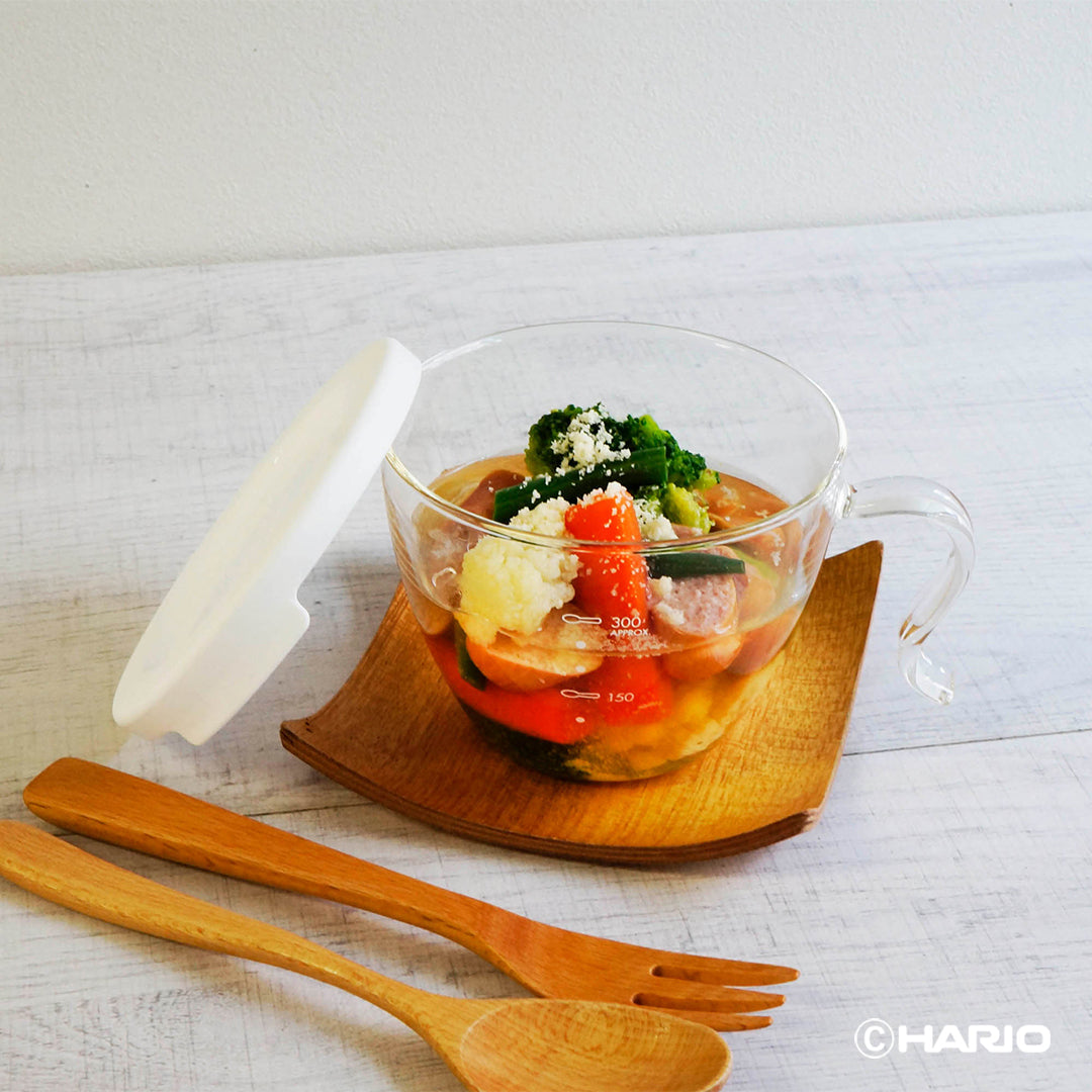 電子レンジで簡単。お味噌汁や一品おかずが電子レンジでつくれるレシピ付き。ちょっと一品ほしいときに、電子レンジで調理してそのまま食卓へ。フタと取っ手がついていて中の食材が見えるので、保存容器としてもお使いいただけます。