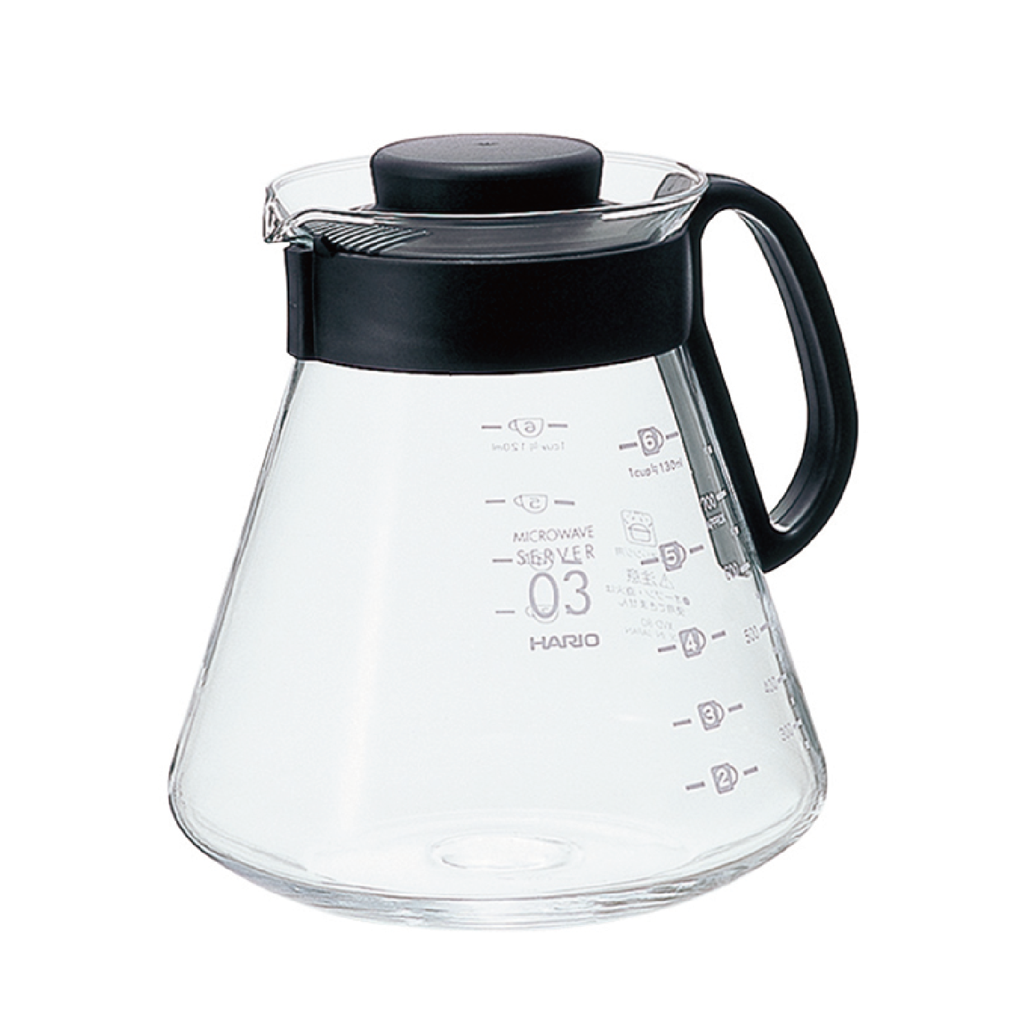 サーバーにフタをセットしたままV60ドリッパーをのせられるため、収納時にとても便利です。出来上がりの目安として「120ml」「130ml」の2種類の目盛りをプリント。お手持ちのカップにあわせて使えるように2つの目盛りと容量目安目盛りをガラスにプリントしました。フタをしたまま電子レンジOK.。※V60シリーズ「03」サイズ対応のサーバーです。