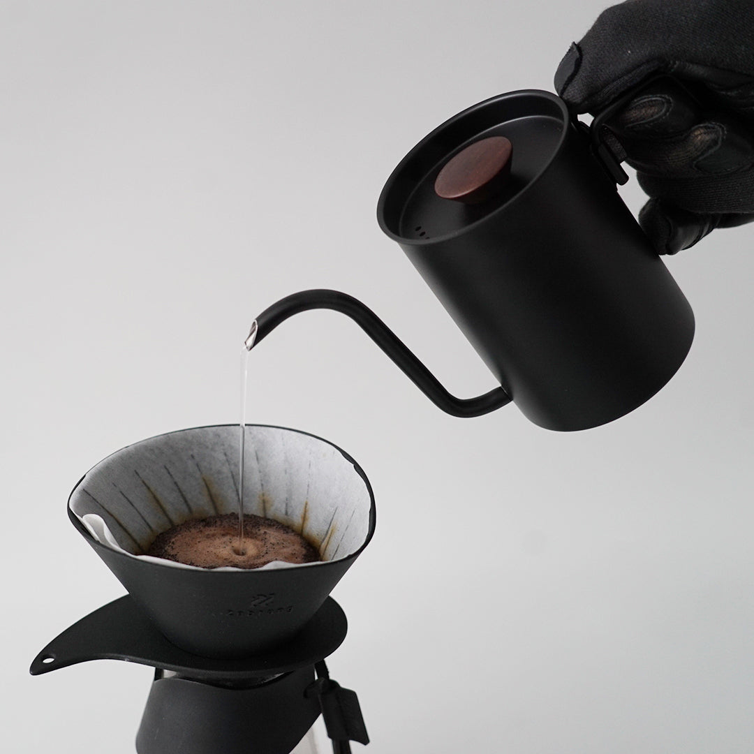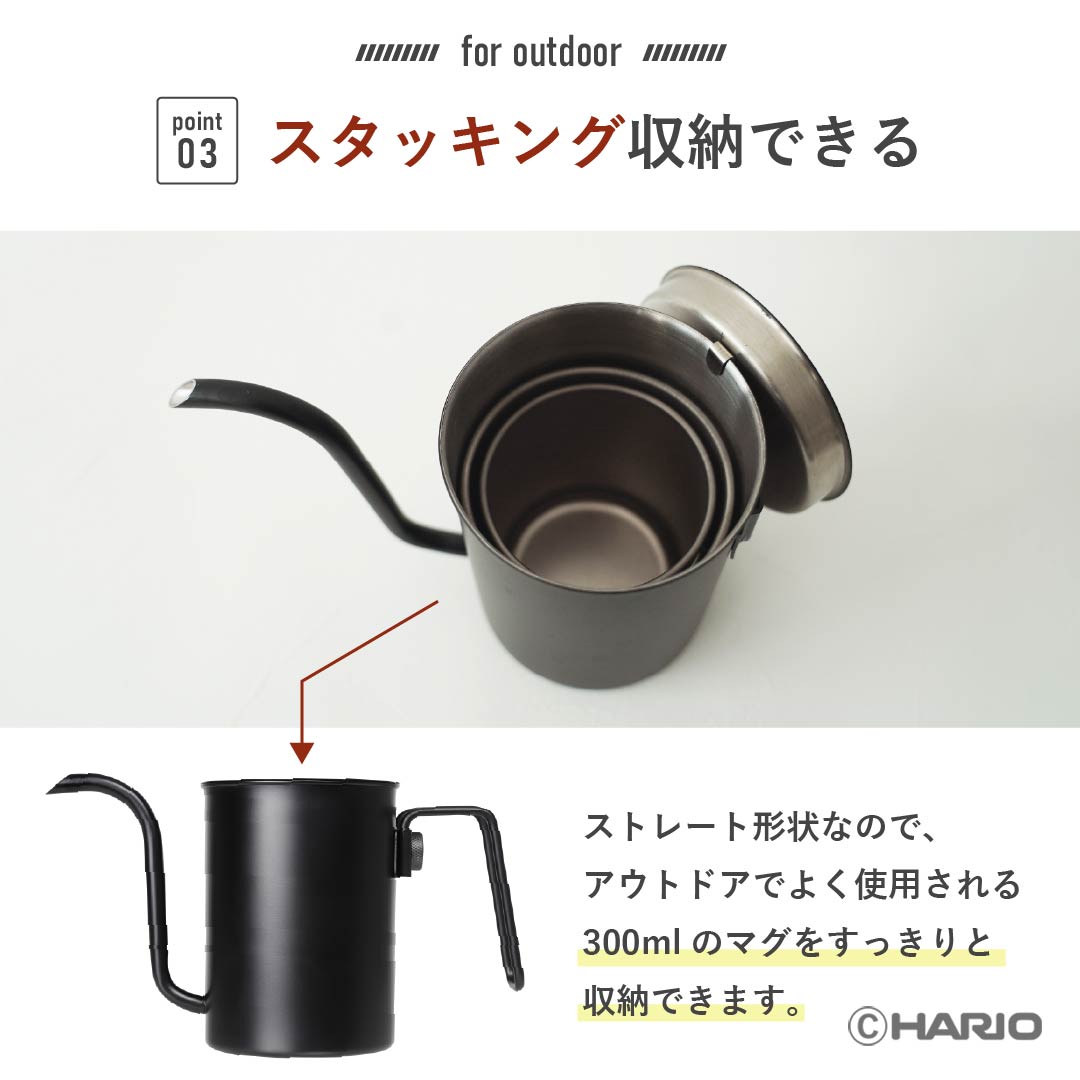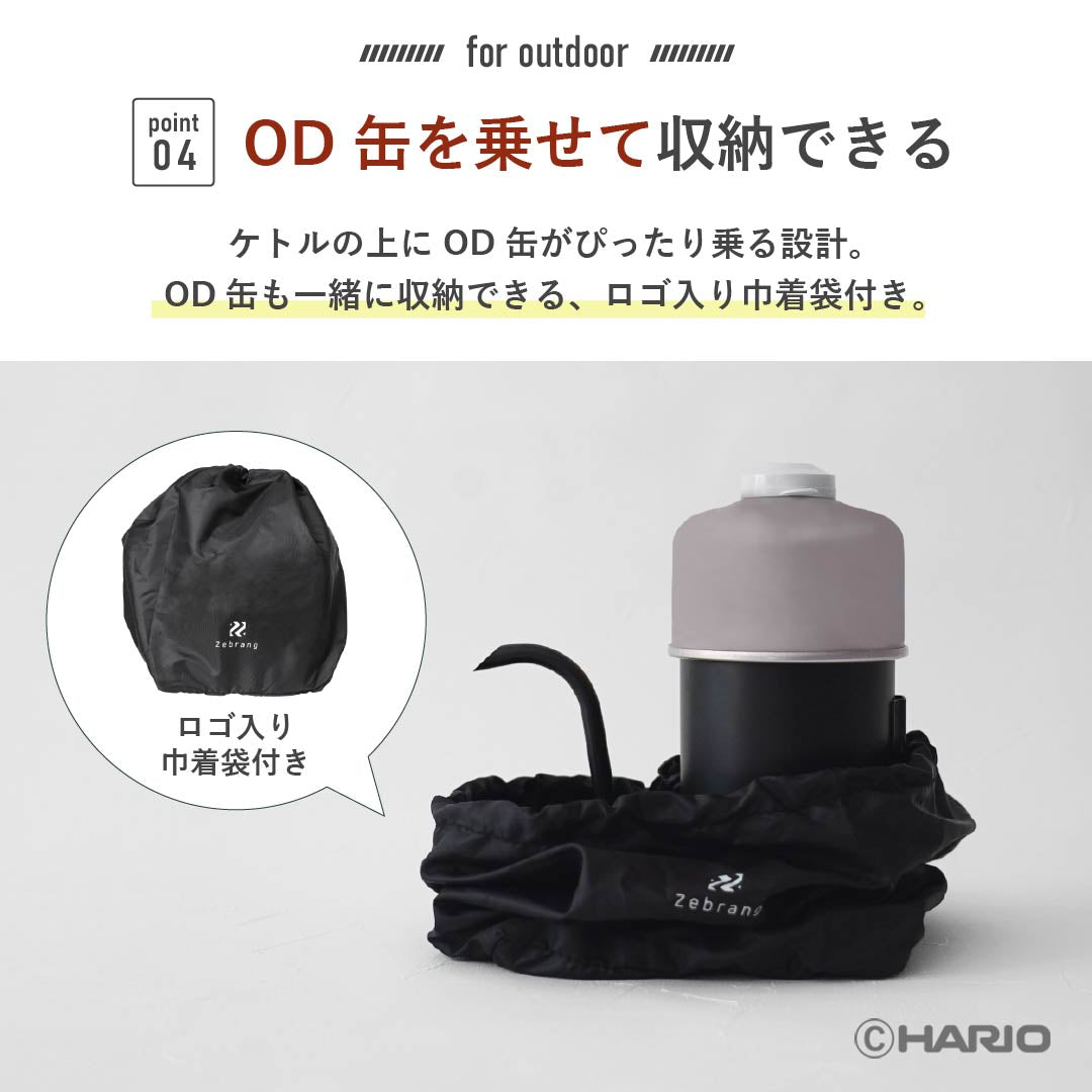 コーヒー専門メーカーが本気で作った、アウトドア用ミニドリップケトルです。こだわり抜いた注ぎ口の設計、スタッキング収納しやすいストレート形状、持ち運びに便利な収納袋付き、外でも自宅でも本格的なドリップが楽しめる<新アイテムです。