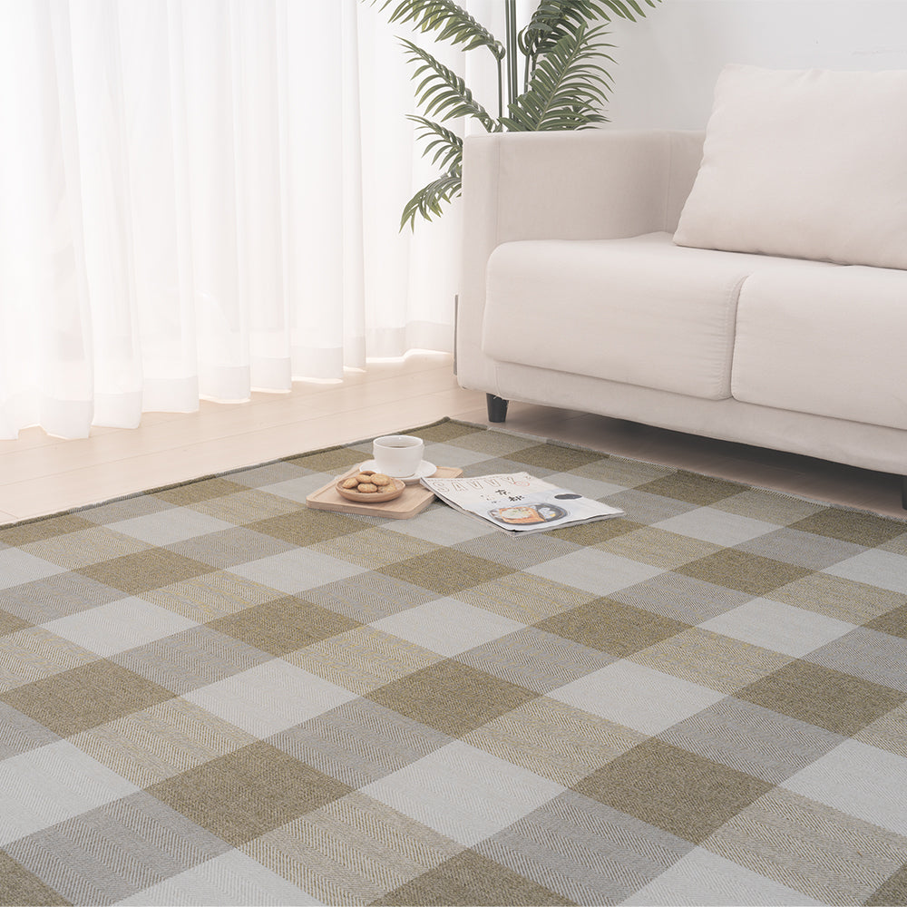 ユニークな編み込み技術を採用した高級感があるデザインのラグです。オールシーズン快適に使用でき、洗濯機で丸洗いも可能です。5mmのウレタンフォームを使用しているので、適度な厚みがあり、クッション性のある素材になっています。