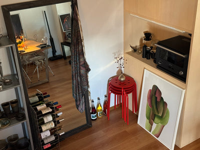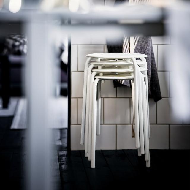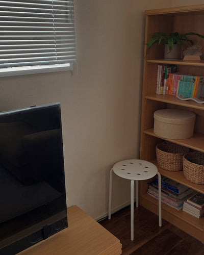 重ねて収納できるスツールです。1脚分のスペースに何脚も収納できるので来客用に複数持っていても邪魔になりません。
